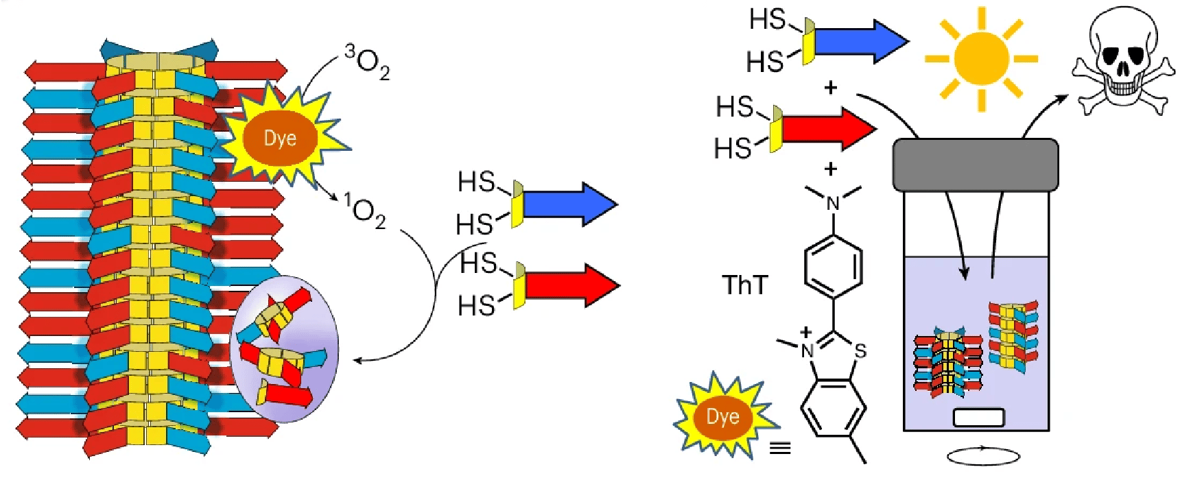 Our system is built from peptide-based building blocks that spontaneously assemble into cyclic structures. These rings stack into fibrous structures that can grow and fragment under mechanical agitation, leading to exponential self-replication. When coupled with the photoredox cofactor Thioflavin T, the system produces singlet oxygen under light irradiation, converting dithiol monomers into disulfide precursors. Replicators that more effectively recruit and activate the cofactor generate precursors faster, thereby gaining a selective advantage in a dynamic, out-of-equilibrium environment.