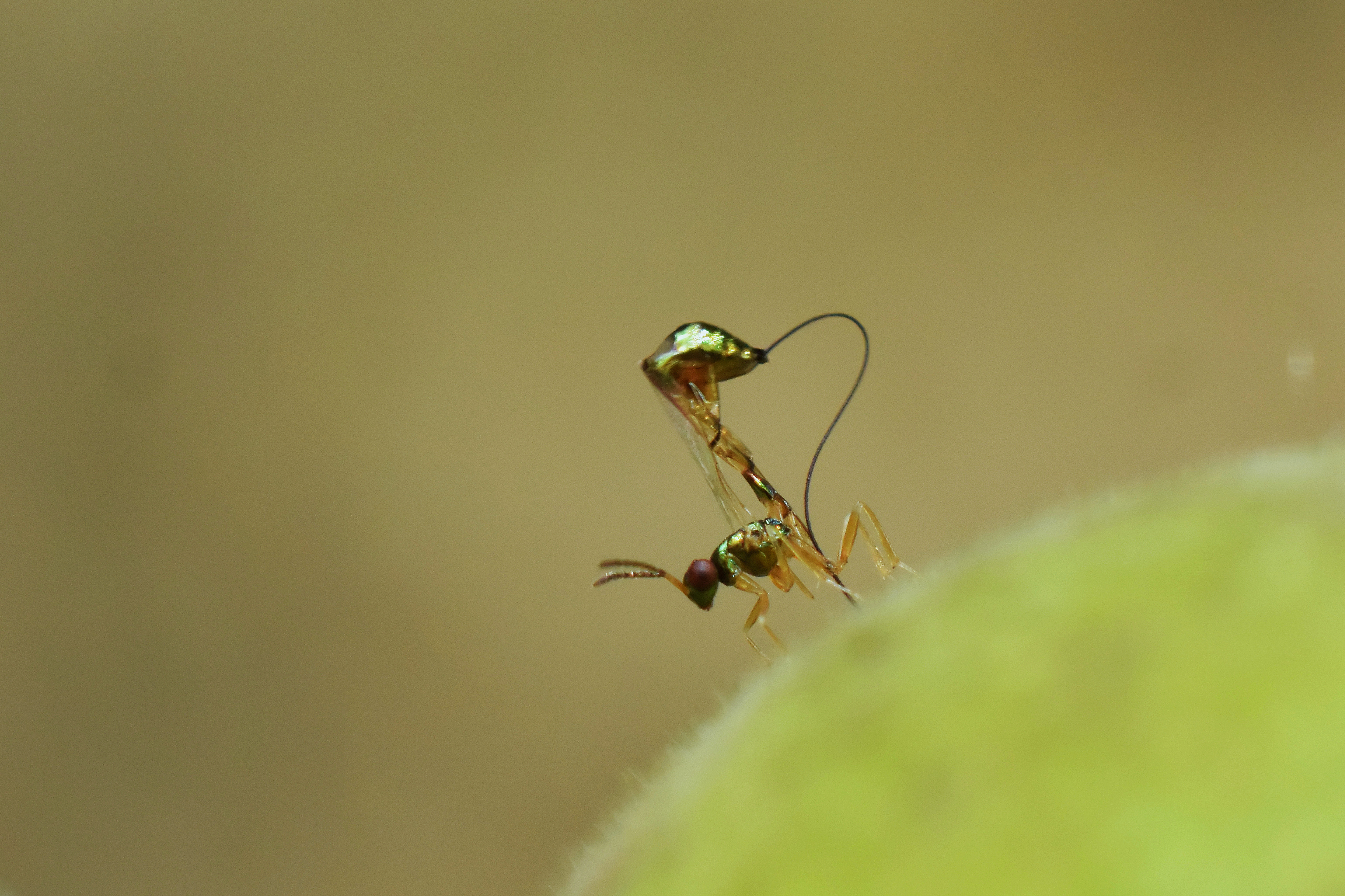 Figure 8. A concerned freeloader: A non-pollinating fig wasp uses its specialised ovipositor to deposit eggs inside a fig. Attribution: Abhijeet Bayani