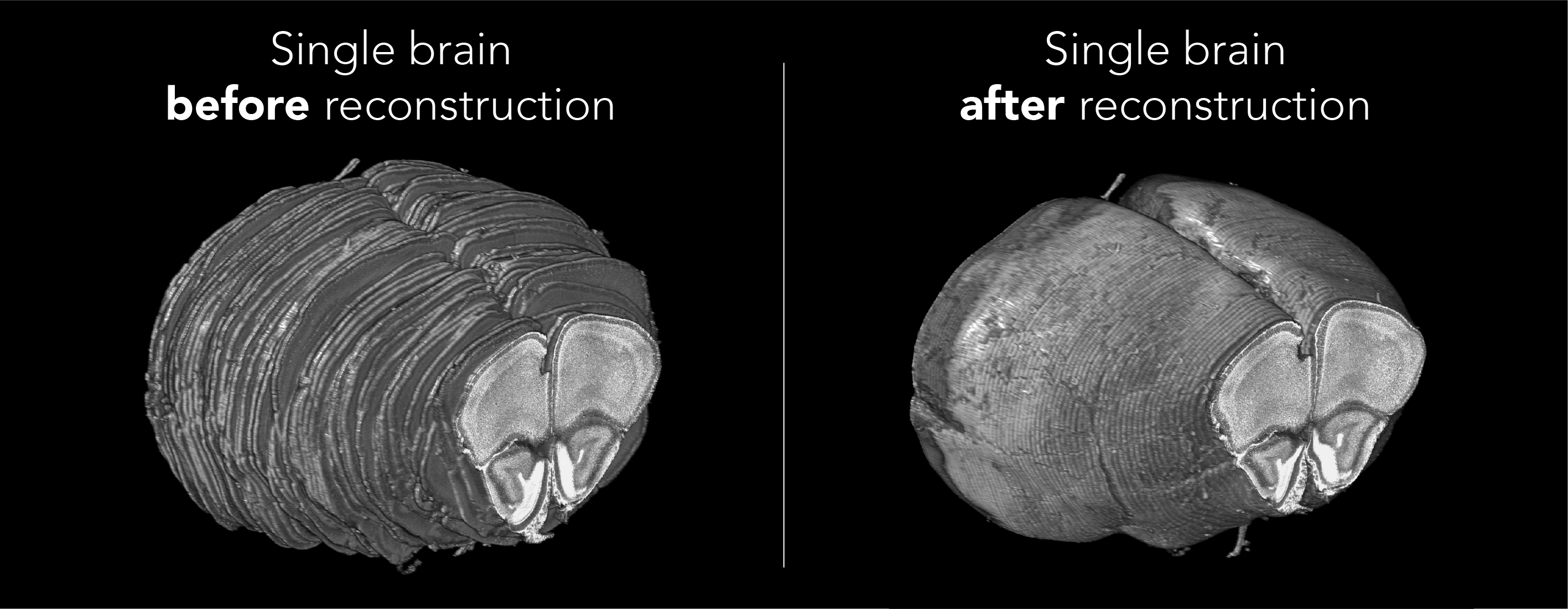 We were thrilled with how well the reconstruction process worked and happy to see a well-defined and smooth template. New coronal slices were easily registered to the template, so we wrote a small python program for automatic template-based segmentation (see the full paper for examples). To encourage the scientific community to utilize and improve the template, we have made all the data available in a well-structured and ordered fashion here: https://doi.org/10.12751/g-node.16wrxa