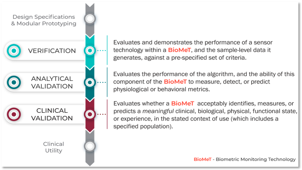 The development of Biometric Monitoring Technologies (BioMeTs) is helping drive the rapid growth of digital medicine. We define BioMeTs as connected digital medicine tools that process data captured by mobile sensors and use algorithms to generate measures of behavioral and/or physiological function. These technologies are often marketed as “validated”, but what does that actually mean? Currently, there is no systemic, evidence-based evaluation framework for these technologies.
