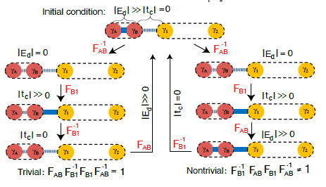 We control fusion and splitting by tuning two parameters via gate voltage: the energy level of the quantum dot (Ed) and its coupling strength with MZMs (tc). When these parameters cross zero energy an odd number of times during a fusion loop, integer charge is pumped between the superconductor and the quantum dot. Crossings an even number of times result in zero charge transfer — a clear, robust signature of nontrivial fusion.