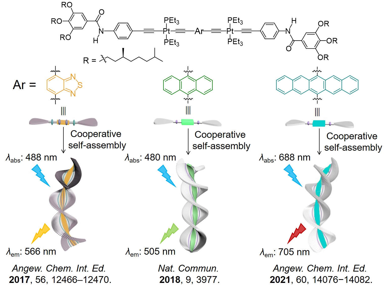 [19] Wang, X. et al. Cooperative supramolecular polymerization of fluorescent platinum acetylides for optical waveguide applications. Angew. Chem. Int. Ed. 56, 12466–12470 (2017).