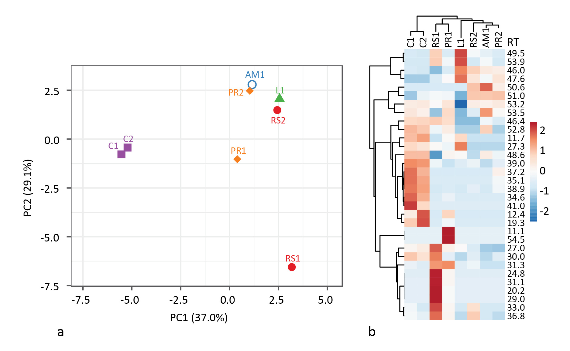 In the end, it was difficult to differentiate Palaeolithic tar production strategies based on the same biomarkers used by Rageot et al. for the Neolithic. This is likely in part due to the greater variation in heating conditions when not using ceramics. Strict oxygen and temperature control is impossible, and tar can be collected from different locations inside the bark roll, resulting in widely varying results even when using the same method. And partly due to the small sample size. Principal component analysis of the relative abundance of select biomarkers based on GC peak area % shows where differences between methods can be found (Fig. 3). Unfortunately, there is also appreciable intra-method variation. More samples should help in that regard.