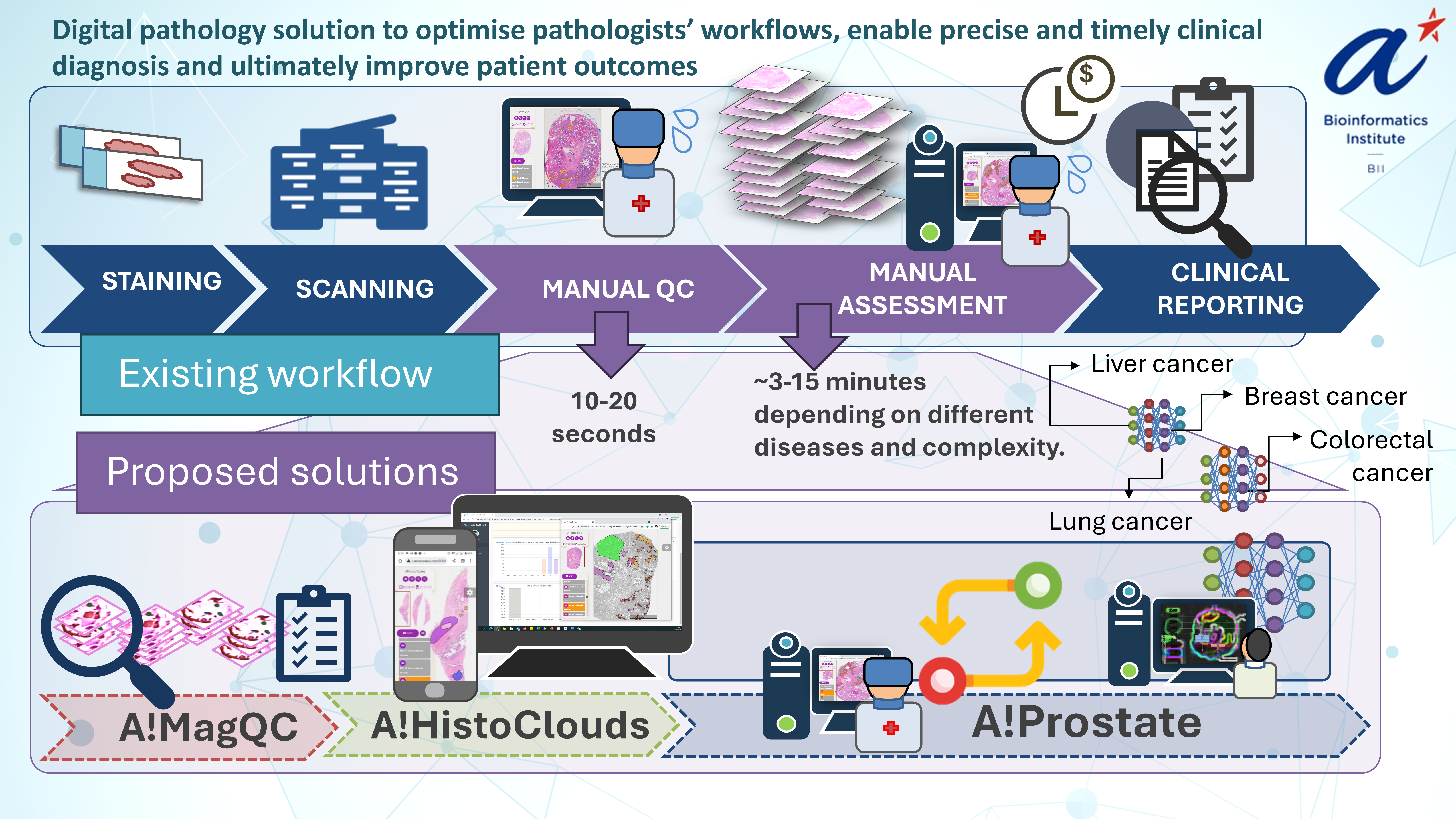 AI-drive digital pathology is an emerging field that leverages artificial intelligence (AI) to enhance diagnostic processes. Despite its promise, the field grapples with critical challenges such as ensuring consistent performance across different hospitals, sample preparations and scanning equipment, and developing a dynamic platform that facilitates seamless interaction between pathologists and AI.