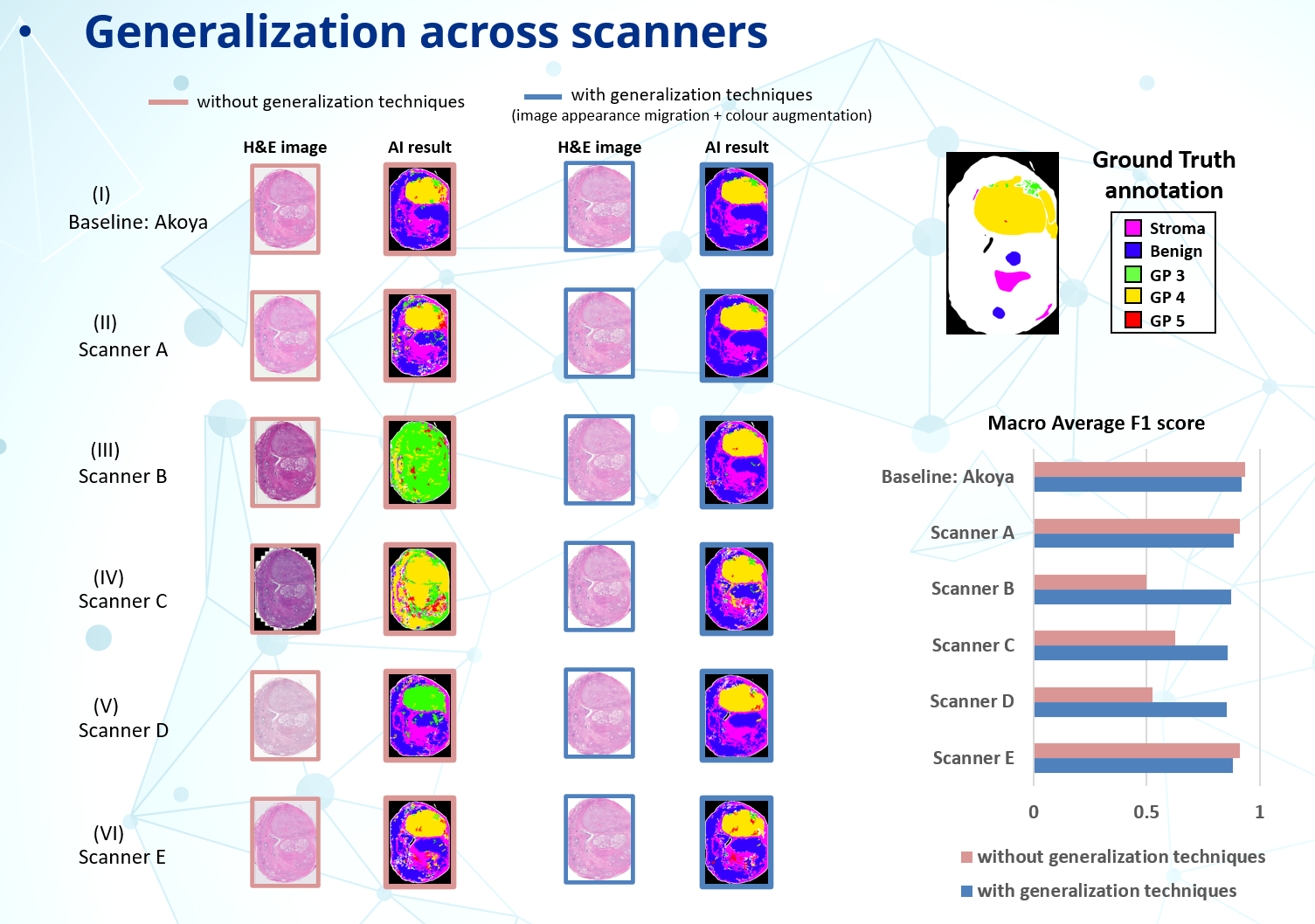 1. Generalization Challenges and Image Appearance Migration (IAM): Integrating AI into digital pathology requires addressing the challenge of ensuring robust generalization across varied datasets. Differences in scanning equipment and sample preparations can lead to significant image variations. These non-biological variations can drastically affect AI performance if unaddressed.