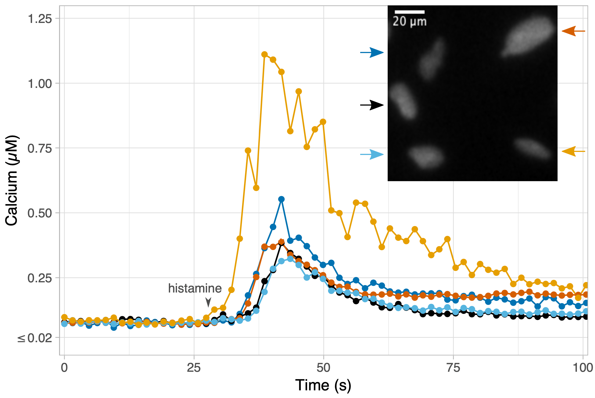 Calcium ions play a key role in different cellular processes. For example, calcium ions are needed for the contraction of muscles, calcium is involved in brain activity and calcium ions are released after the perception of hormones by cells. Given the universal role of calcium in cellular processes, scientists are interested in measuring it. To demonstrate the application of the new biosensor, it was used to detect the increase of the calcium concentration in endothelial cells by stimulation with histamine.