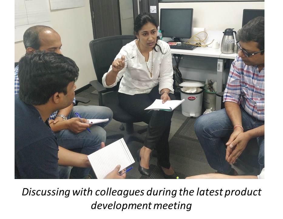 • 10:00 a.m.: My first meeting today is a video conference call with the software development team based in India. There are many other colleagues on the call; the technical product owner, who coordinates the work and priorities of the developers, the business analysts, who help translate product requirements into actual features to be built, and the user experience designer, who studies user behavior and optimizes the platform design.