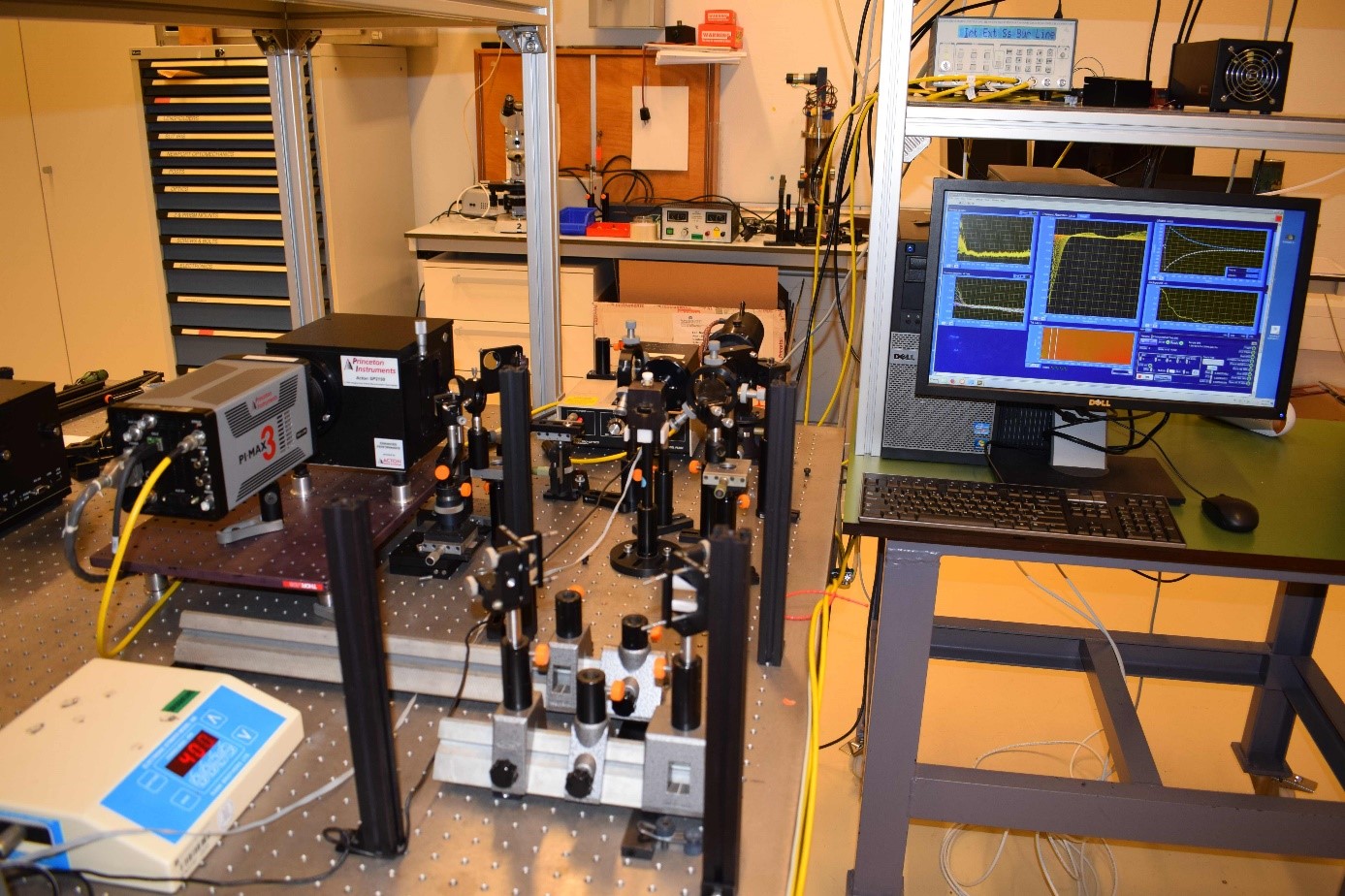 After the experiments in Amsterdam, we teamed up with dr. Adele Laurent and dr. Miroslav Medved computational chemists from the University of Nantes, France and Palacký University, Czech Republic, respectively. Their calculations predicted absorption maxima of the two photoisomers that were very similar to those observed in Amsterdam, but also a barrier for re-isomerization that fitted excellently the observed half-lives. At the same time, we turned to dr. Mariangela Di Donato (European Laboratory for Non Linear Spectroscopy (LENS), Florence, Italy) for further experimental confirmation of the structural changes and to investigate the photo-isomerization mechanism. With her facilities (see Figure 3) we could follow the excited-state dynamics with a femtosecond time resolution, and found that photo-isomerization occurs on an ultrafast time scale and led to transient absorption spectra that seamlessly connected to the nanosecond experiments. Mark synthesized several more varieties and with them we experimentally explored the properties of this new switch and how they can be adapted, always supported by computational studies. As it turns out, this is an incredibly versatile switch that can be operated under a wide variety of experimental conditions including biological ones, and with properties of we which we foresee that it will be relatively easy to tune them to the specific needs of users.