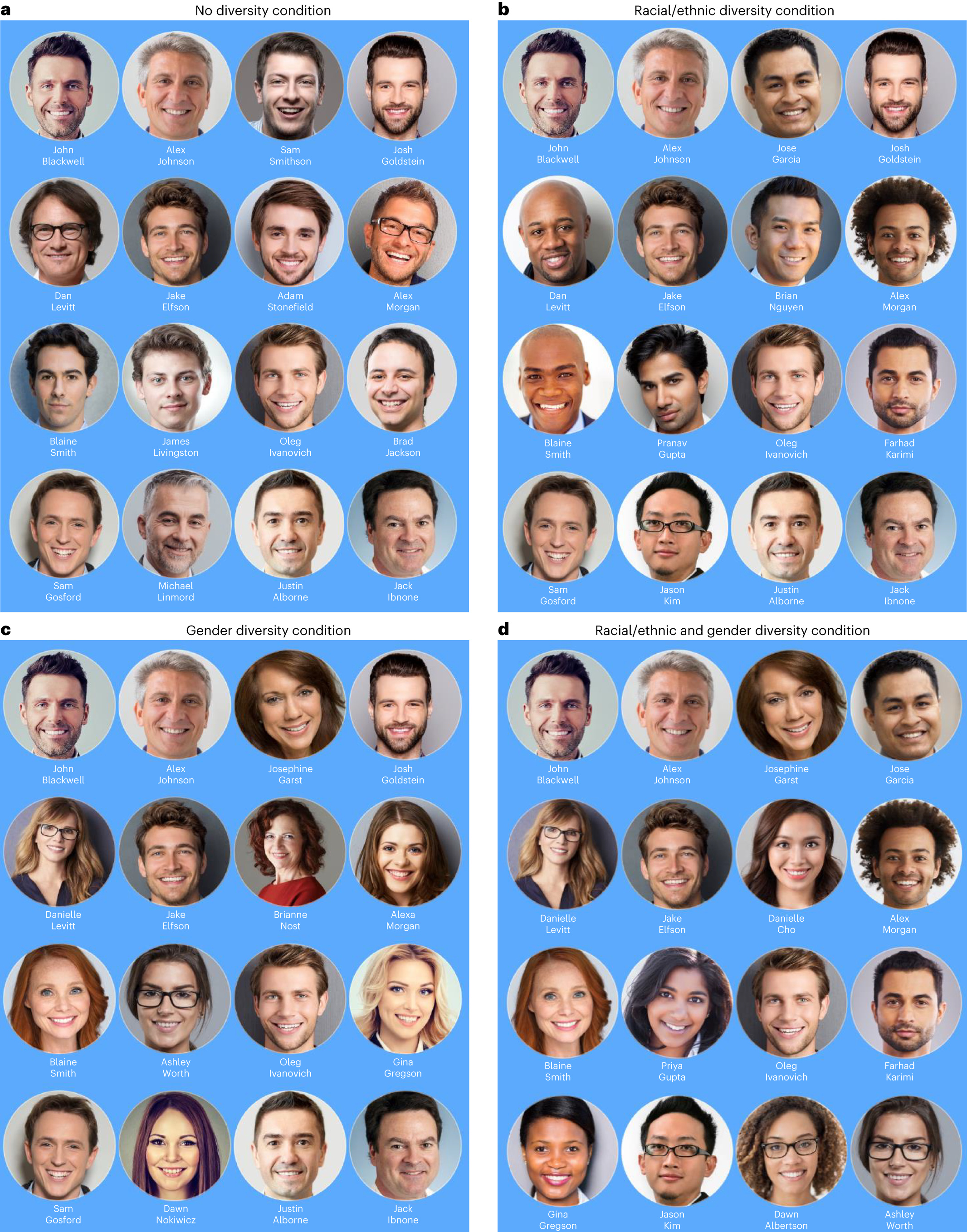 To recruit jobseekers, we created a company website and posted job advertisements online. When participants clicked on the job advertisement, they were directed to one of four versions of the website which depicted a workplace with varying levels of racial/ethnic and gender diversity (See Figure 1). Crucially, participants had to scroll over the employee photographs in order to apply. Applicants indicated their performance, achievements, work and school experiences, as well as their demographic background. Two experienced Human Resources coders, unaware of the experimental design, evaluated job applicant quality on a 1-5 scale (1 = Not acceptable, 5 = Extremely Acceptable).