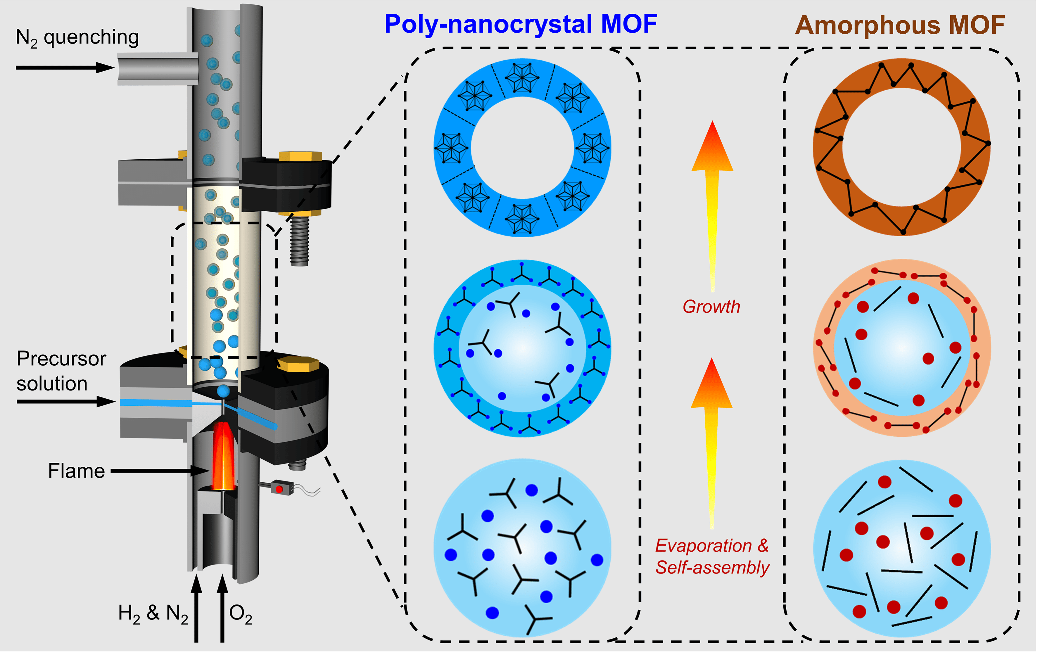 For more details, please check out our paper on Nature Communications "A General Flame Aerosol Route to Kinetically Stabilized Metal-organic Frameworks"