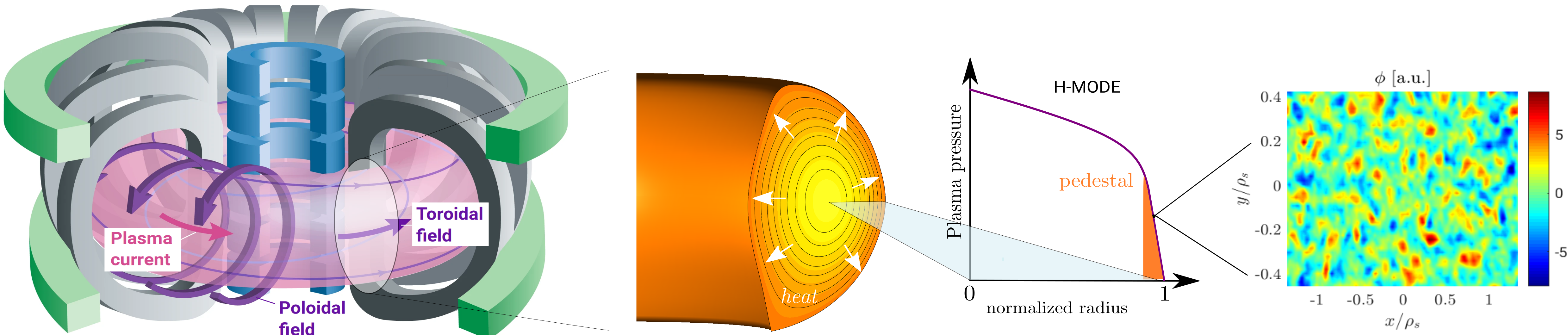 To this end, we employed the sensitivity-driven approach in the context of simulations of nonlinear turbulent transport in tokamaks. These simulations represent a paradigmatic example in which UQ and SA are needed but in which most standard approaches are computationally infeasible due to the large cost of these simulations. The experimental error bars of various input parameters (such as the spatial gradients of the density and temperature of a given plasma species) can be relatively large, on the order of a few ten percent, which makes the SA task especially valuable since understanding the impact of these uncertainties is critical. Moreover, ascertaining the impact of variations in parameters that characterize the confining magnetic field is crucial as well for, e.g., design optimization. As a practically relevant example of such simulations, we focused on the near-edge region of tokamaks, which is recognized as crucial for setting the overall performance of these devices. A visual summary of these simulations is depicted in Figure 2.