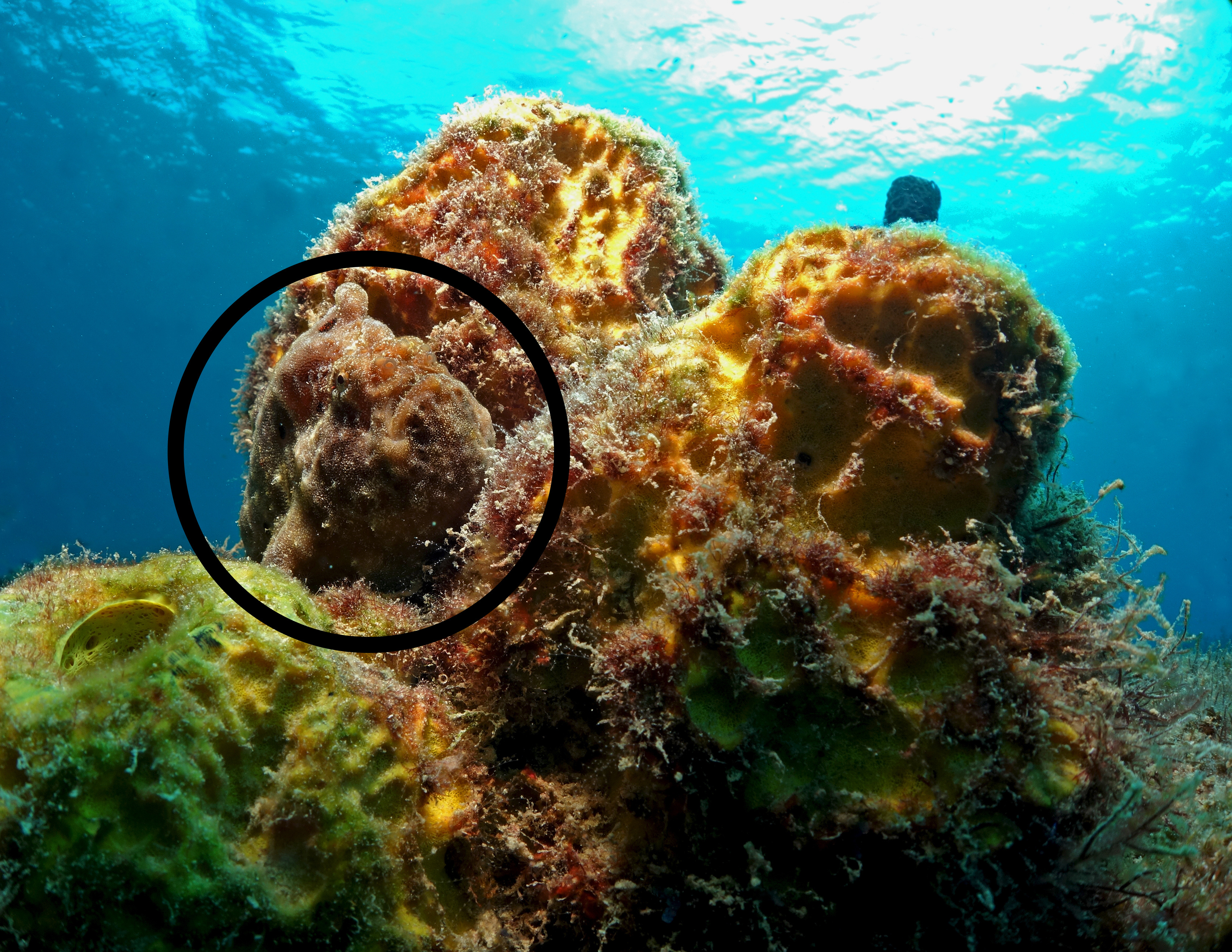 Real life in a coral reef is often stranger than fiction, and sponges don’t disappoint. For example, the deep-sea harp sponge Chondrocladia lyra is stationary but carnivorous, eating fish and crustaceans that swim into their vertical columns (see photos below). In contrast, the tropical sponge Cliona orientalis makes its living as an encrusting sponge, burrowing into a live coral’s skeleton and overgrowing it at the surface.