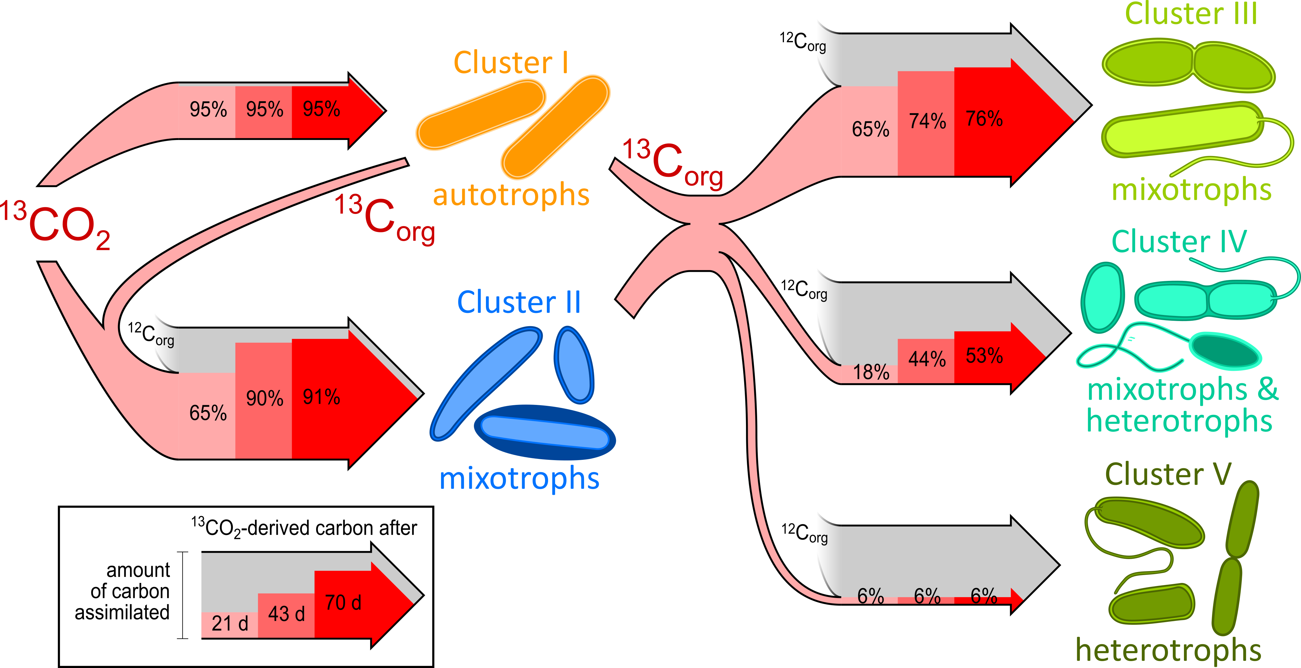For this purpose, our aim was to reconstruct the carbon flux of the microbial community found in the groundwater at one site of the Hainich CZE. Given suitable conditions for chemolithoautotrophy underground, we expected that most organisms would grow strictly autotrophically, with a small community of heterotrophs feeding on their remains. Surprisingly, we realized that most organisms were “mixotrophs”, able to utilize both inorganic and organic carbon. In this way, they managed to benefit from all available carbon sources, employing different strategies to balance them against each other. These organisms formed a complex network, exchanging organic carbon compounds and recycling everything possible in the groundwater.