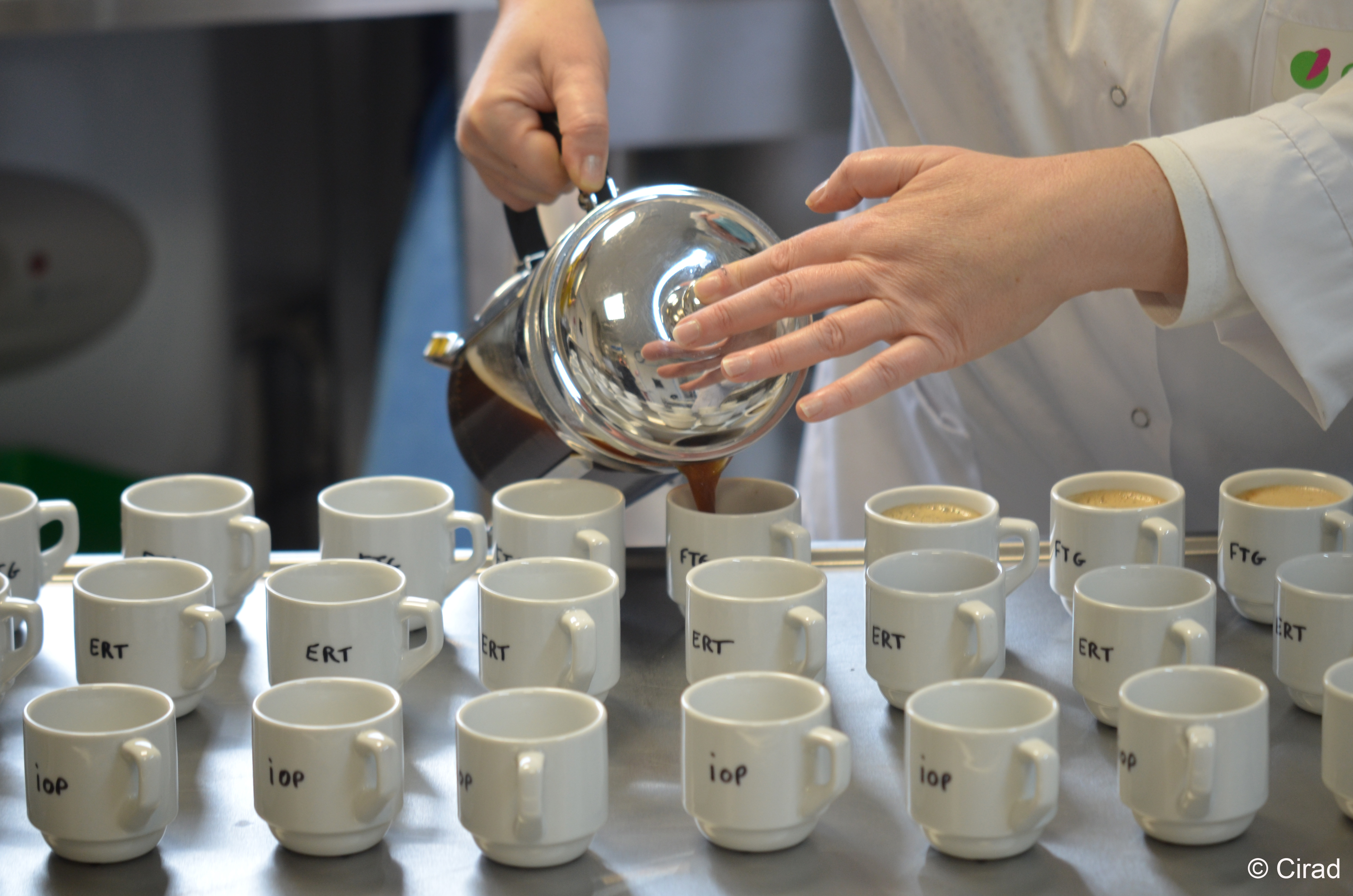 In 2020 we were able to acquire two samples of stenophylla coffee: one from the rediscovered population in Sierra Leone, and the other from plants grown at the Coffea Biological Resources Center on Reunion Island (Indian Ocean), originally collected many years ago from Ivory Coast. The Sierra Leone sample underwent an initial tasting by Union Hand-Roasted Coffee, in London, and then a full evaluation was made of the Ivory Coast sample by CIRAD, at their sensorial analysis laboratory in Montpellier, France. Subsamples were also sent out to other coffee experts. In total, a panel of 18 judges evaluated the flavour (taste and aroma) of stenophylla coffee, alongside Arabica and robusta. Most of the samples were tasted blind tasting, that is, the identity and origin of the samples, and the controls, were unknow to the judges