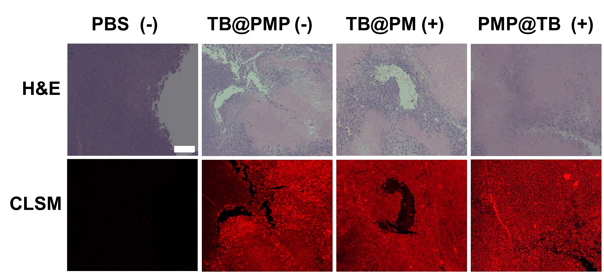Meanwhile, the TB could keep track of the micelles and generate cytotoxic ROS to damage the tumor cell under light irradiation. The TB@PMP micelles exhibited synergistic effect on the suppression of HeLa cells and HeLa-bearing mouse animal mode (Figure 2).