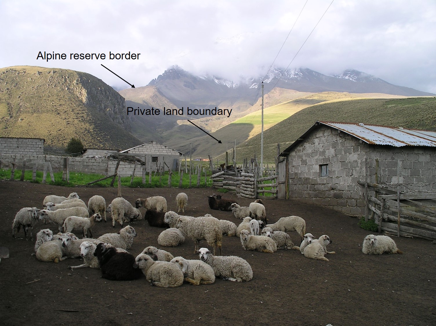 Vicuñas occupy a narrow band of habitat that lies approximately between homesteads on private land in the lower páramo and the boundary of the original mountain reserve.
