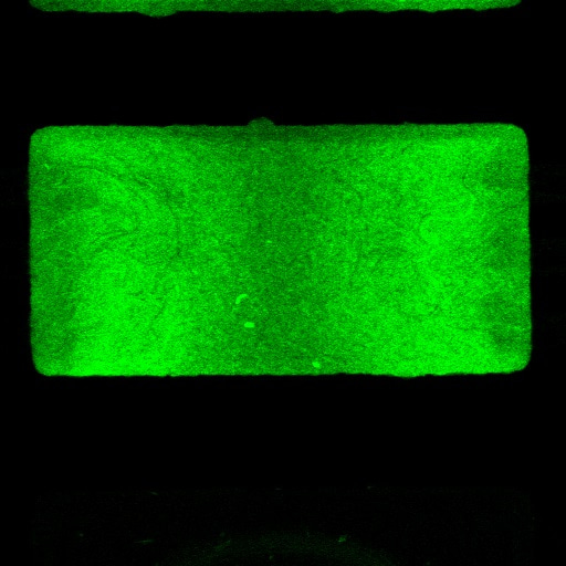Biofilm forming in a chamber of the microfluidic device. Note the characteristic 'butterfly' shape. The biofilm forming in a chamber of the microfluidic device. Note the 'characteristic butterfly' shape at the bottom of the chamber.