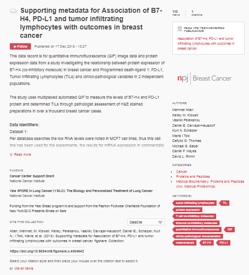 While the standard Research Data Support service is optional, this new approach with npj Breast Cancer provides a consistent service to every accepted paper published in the journal. Thanks to our partnership with the Breast Cancer Research Foundation (BCRF), this comes at no cost to the authors. We envisage that this approach to Research Data Support will drive up standards for data sharing consistently in the journal. We have also increased the scope of Research Data Support, helping authors follow best practice in data sharing even if they don’t have data that can be shared publicly via figshare.