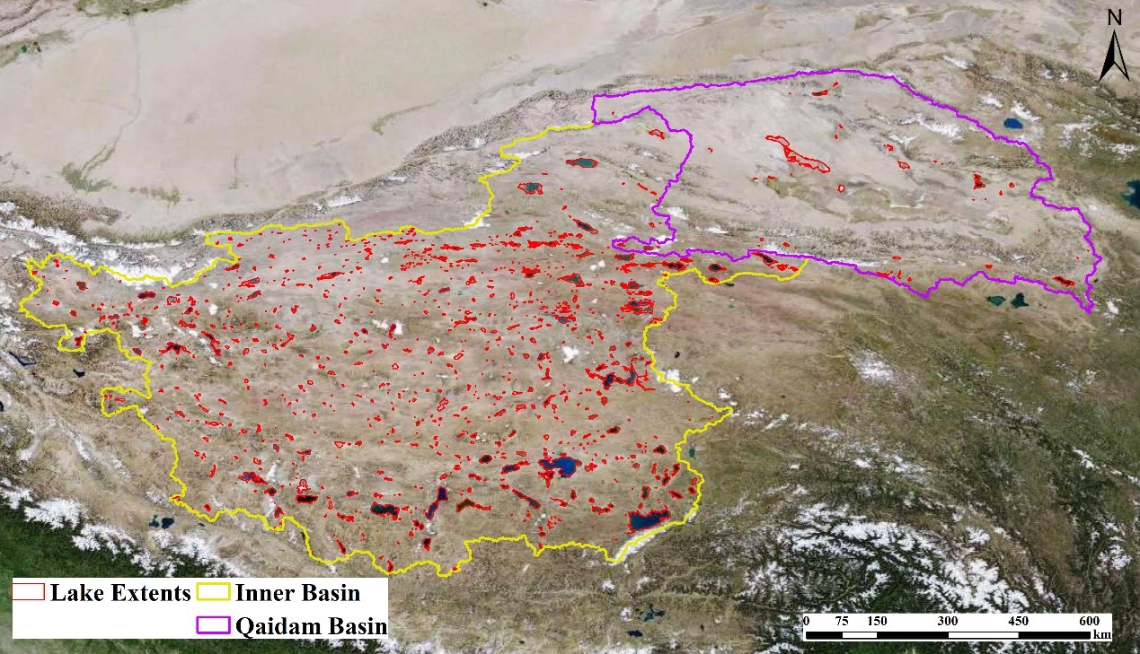 Due to the harsh environment and few in situ observation, satellite remote sensing has become an indispensable tool for studying lake dynamics in the region. The Landsat satellite has data archive of more than 40 years, which provides the opportunity to develop a long-term data of lake water volume change to study the climate change in the region. Nevertheless, existing studies are limited to a few large lakes or a short time span of less than 15 years. They have neither made full use of available Landsat data, nor have they covered more than 75% of the lakes in the region.