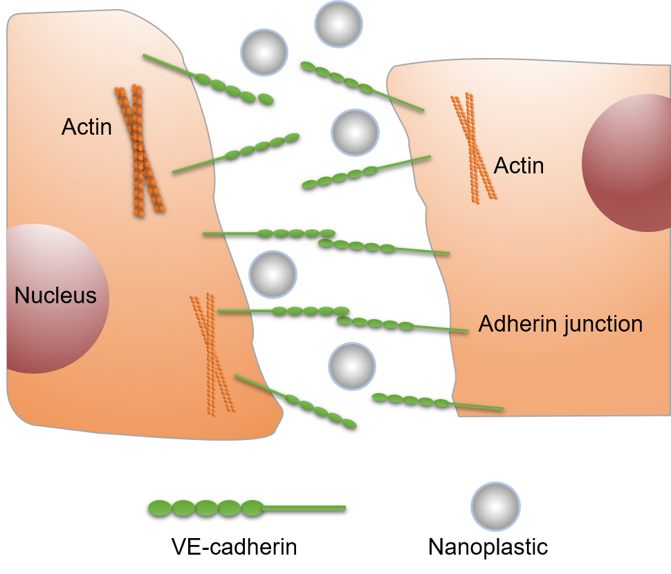 Fundamentally, nanoplastics-induced vasculature permeability appeared to be biophysical and biochemical in nature resulting from the interactions between the nanoplastics and VE-cadherin junction proteins. This study further revised an earlier belief6 that inorganic nanoparticles, but not polymeric nanoparticles were competent in inducing endothelial leakiness.