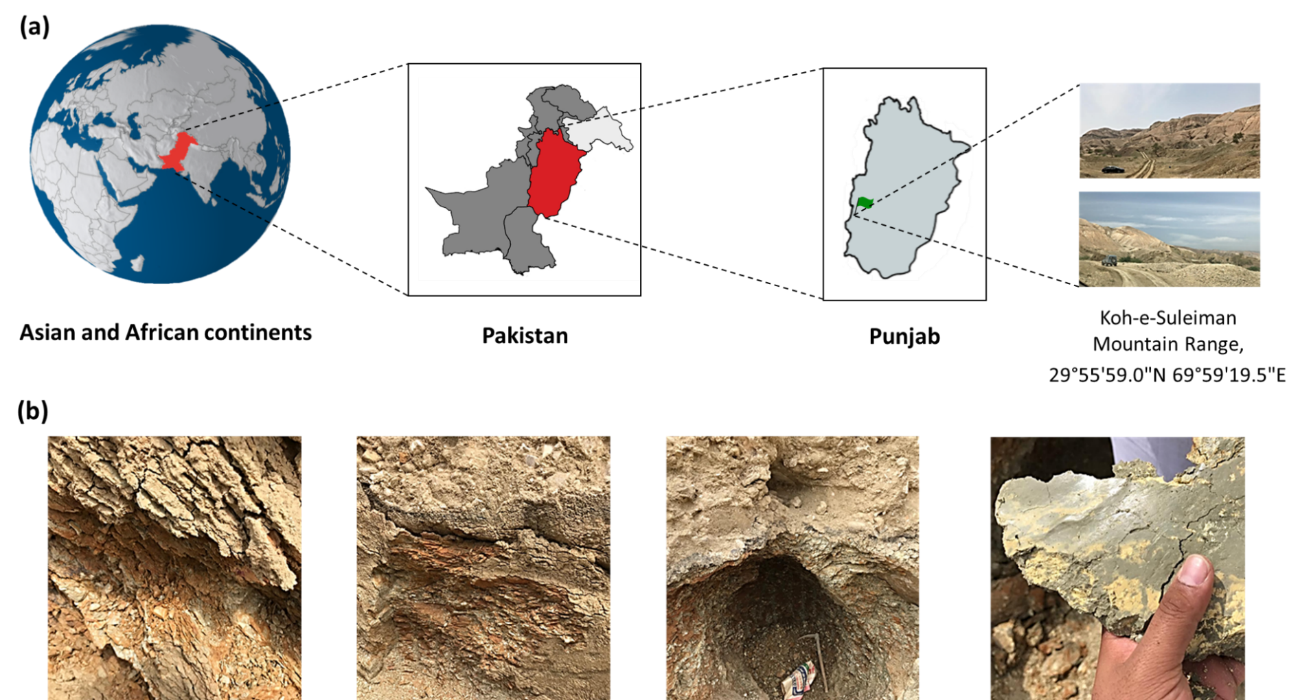 (a) Geological map of Pakistan and (b) site for raw clay sample collection.