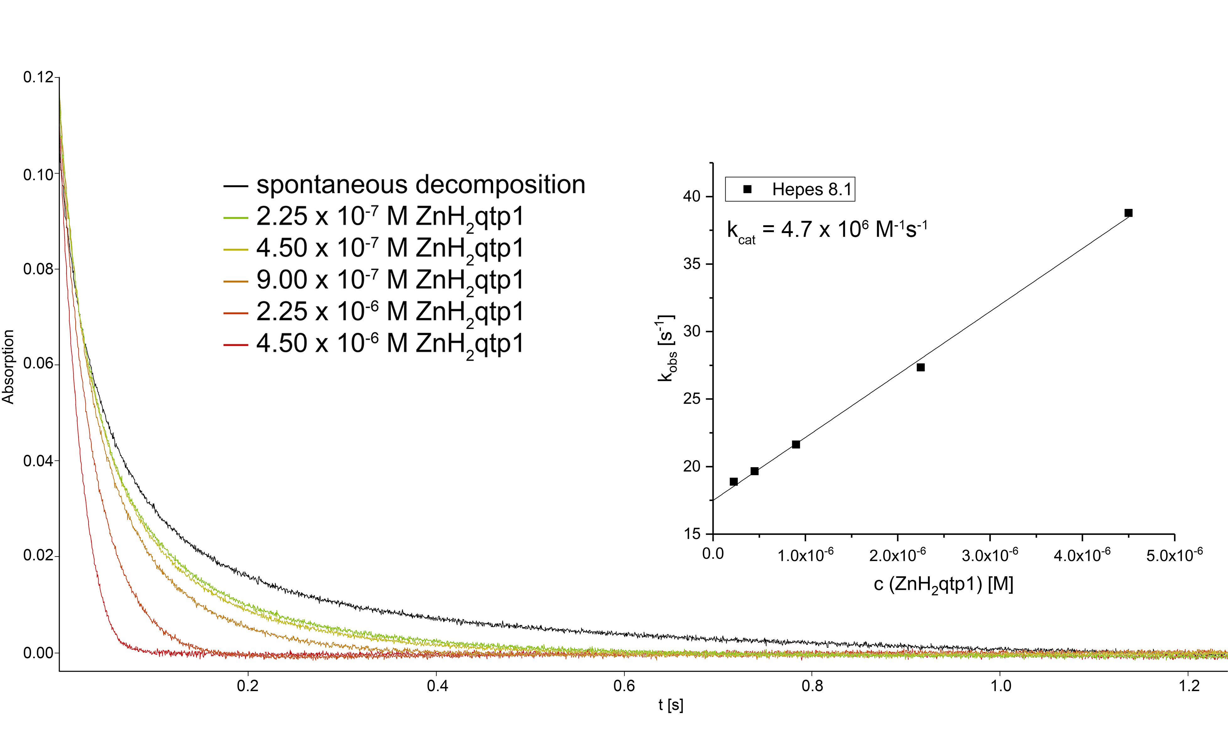 We found that without zinc, the organic ligand is not functional, whereas its zinc complex behaves like a SOD enzyme despite the lack of a redox-active transition metal. Contrary to what has been found for manganese-containing SOD mimics, the activity of the catalyst is actually enhanced by phosphate – a phenomenon that we hypothesize results from more efficient proton transfer between the two negatively charged buffer components and the positively charged zinc species in the catalytic cycles. Efficient proton transfer facilitates the electron transfer required for catalytic superoxide degradation. We were able to generate a transient paramagnetic zinc complex by reacting the starting material with a one-electron oxidant and a base. We believe that this corresponds to the zinc-quinoxyl radical complex that would result from the initial one-electron oxidation by superoxide.