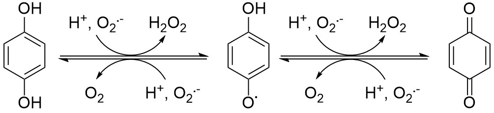 In our Nature Chemistry article, we use a substantially different approach to achieve SOD mimicry. Instead of a redox-active transition metal ion, we use a zinc complex with a redox-active ligand. The redox-active portion of the ligand is a quinol, which can react with superoxide to attain one of three oxidation states: quinol, quinoxyl radical, and para-quinone. The zinc, conversely, remains in the +2 oxidation state throughout catalysis. The zinc is still essential to the catalysis in that it draws superoxide anions towards the complex, brings reactive moieties into close proximity to each other, and modulates the acidity of the ligand and consequently its redox potential. The zinc binds more tightly to the ligand than manganese, and even if it were to be released, the zinc dications are much less toxic. The few known instances of zinc poisoning have resulted from people eating metallic objects.
