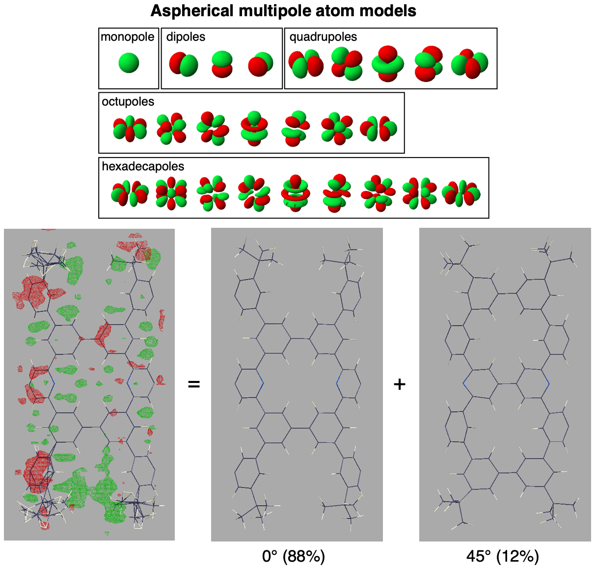 Fig. 2 | Unexpected disordered structure found in structural refinements. Application of aspherical multipole atom models revealed the disordered structure at the 45°-rotated position. See also Fig. 3 in the paper.