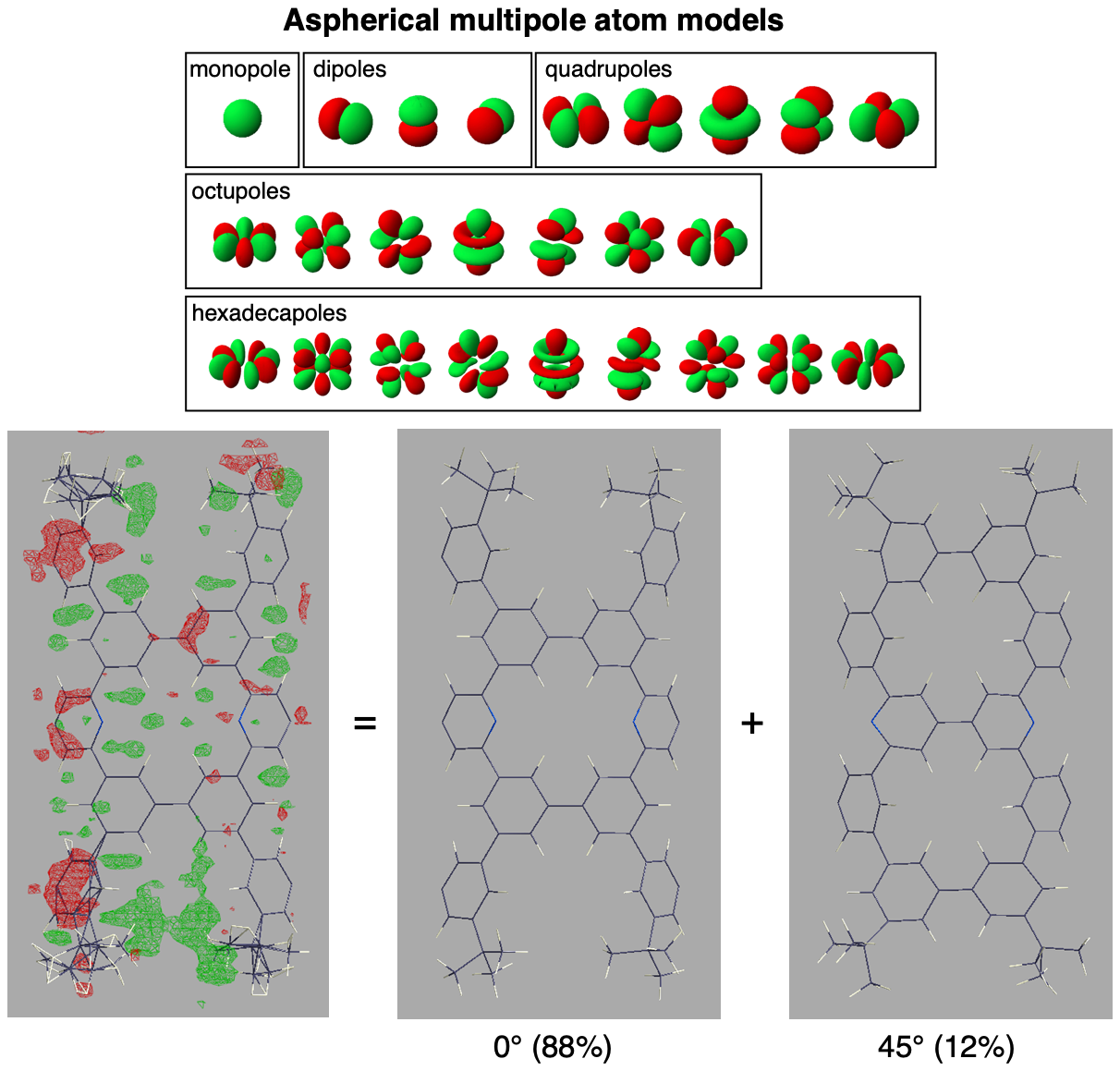 Fig. 2 | Unexpected disordered structure found in structural refinements. Application of aspherical multipole atom models revealed the disordered structure at the 45°-rotated position. See also Fig. 3 in the paper.
