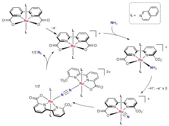 [1] Ruthenium-catalysed oxidative conversion of ammonia into dinitrogen. K. Nakajima, H, Toda, K. Sakata, Y. Nishibayashi Nat. Chem. 2019, 11, 702-709 (10.1038/s41557-019-0293-y).