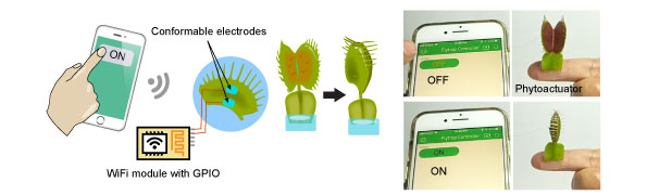 For better understanding on the plant robot, please read our recent publication in Nature Electronics: An on-demand plant-based actuator created using conformable electrodes.