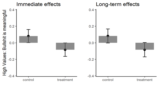 Figure 4. Bullshit receptivity immediately after the intervention (left panel) and four weeks later (right panel)