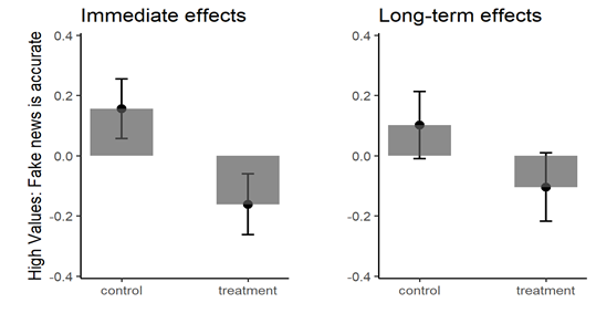 Figure 3. Accuracy evaluation of fake news immediately after the intervention (left panel) and four weeks later (right panel)