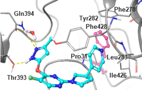 Computational model showing a prediction of how JNJ-6640 may bind to PurF (Fig. 2b)