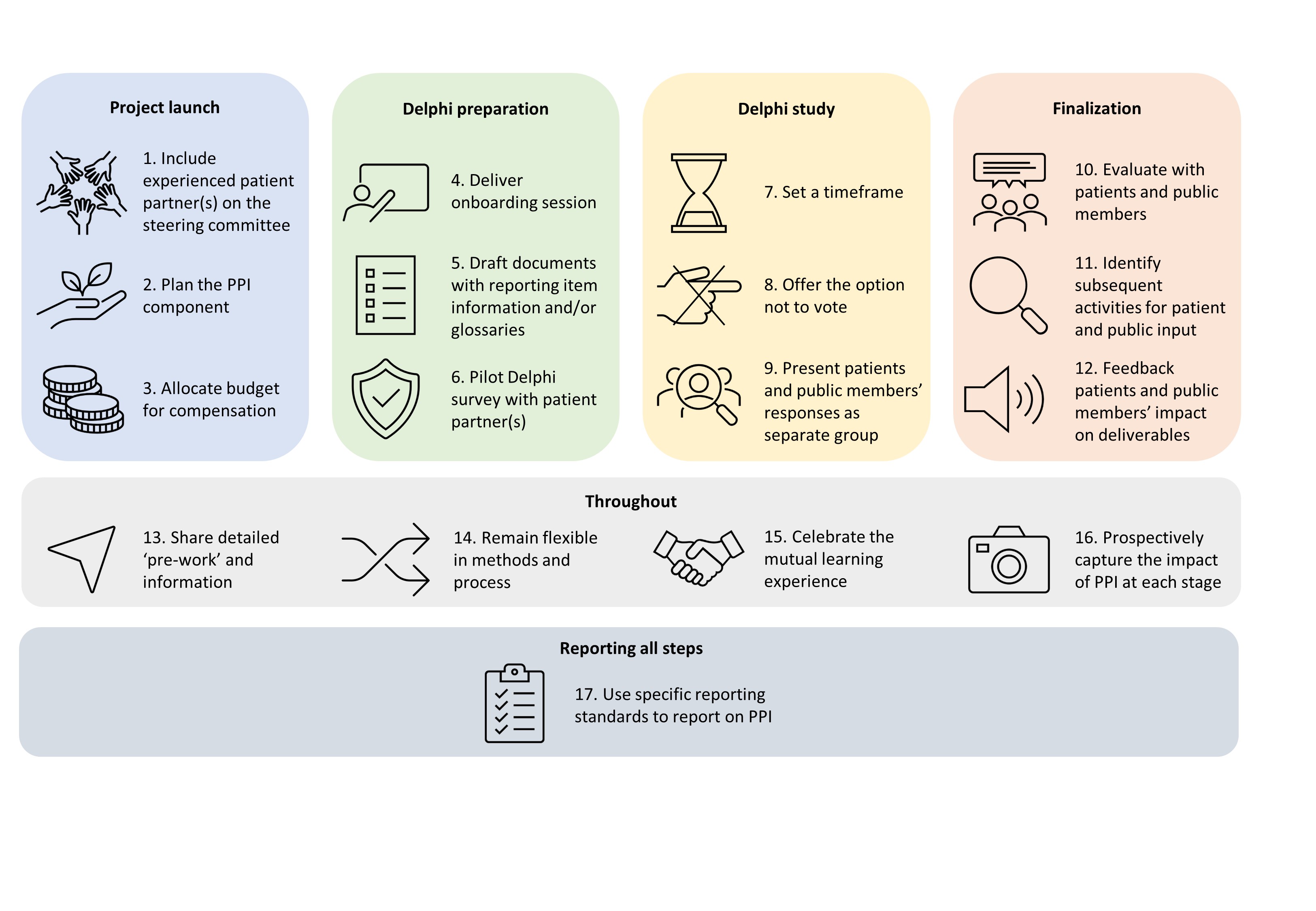 Figure: 17 steps to meaningful Patient and Public Involvement (PPI) in reporting guideline development