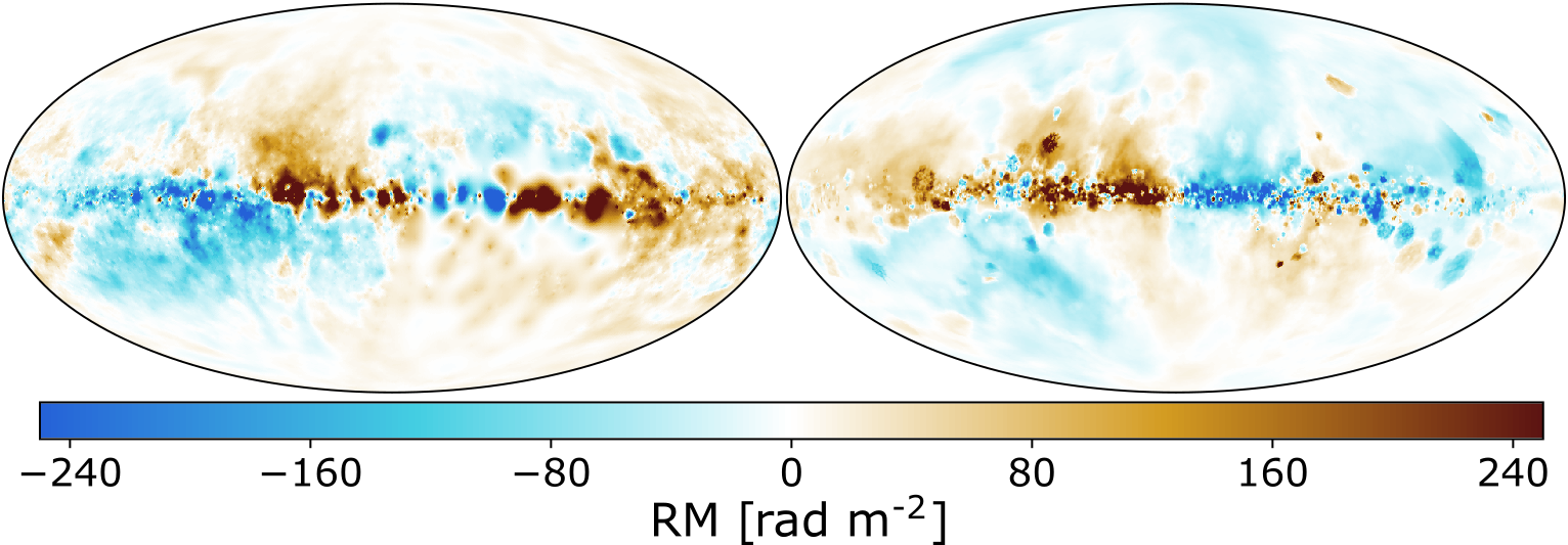 In summary, modern cosmological MHD simulations of MW formation, combined with ab-initio modeling of star formation, stellar feedback, and distribution of free electrons within the ISM, effectively elucidate the structures observed in RM data. This comprehensive approach to generating synthetic RM observations contributes significantly to our comprehension of the origin of magnetic fields within our Galaxy.