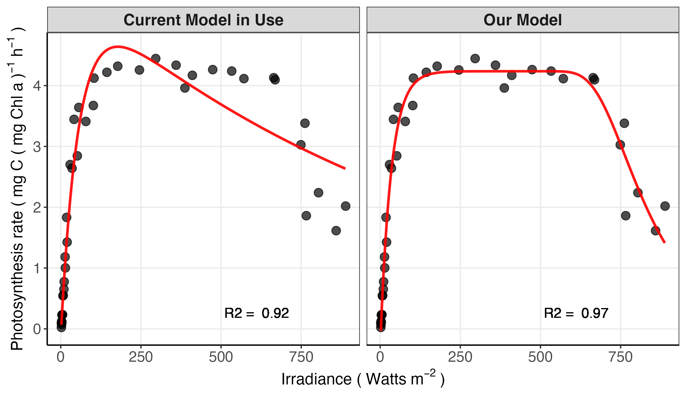 Photosynthesis-irradiance (PI) models are core components of how we estimate ocean primary production. By capturing the plateau and photoinhibition simply and accurately, our formulation should lower uncertainty in primary-production estimates and improve ocean-climate predictions. Better estimates support more robust projections of the ocean’s role in Earth’s climate.
