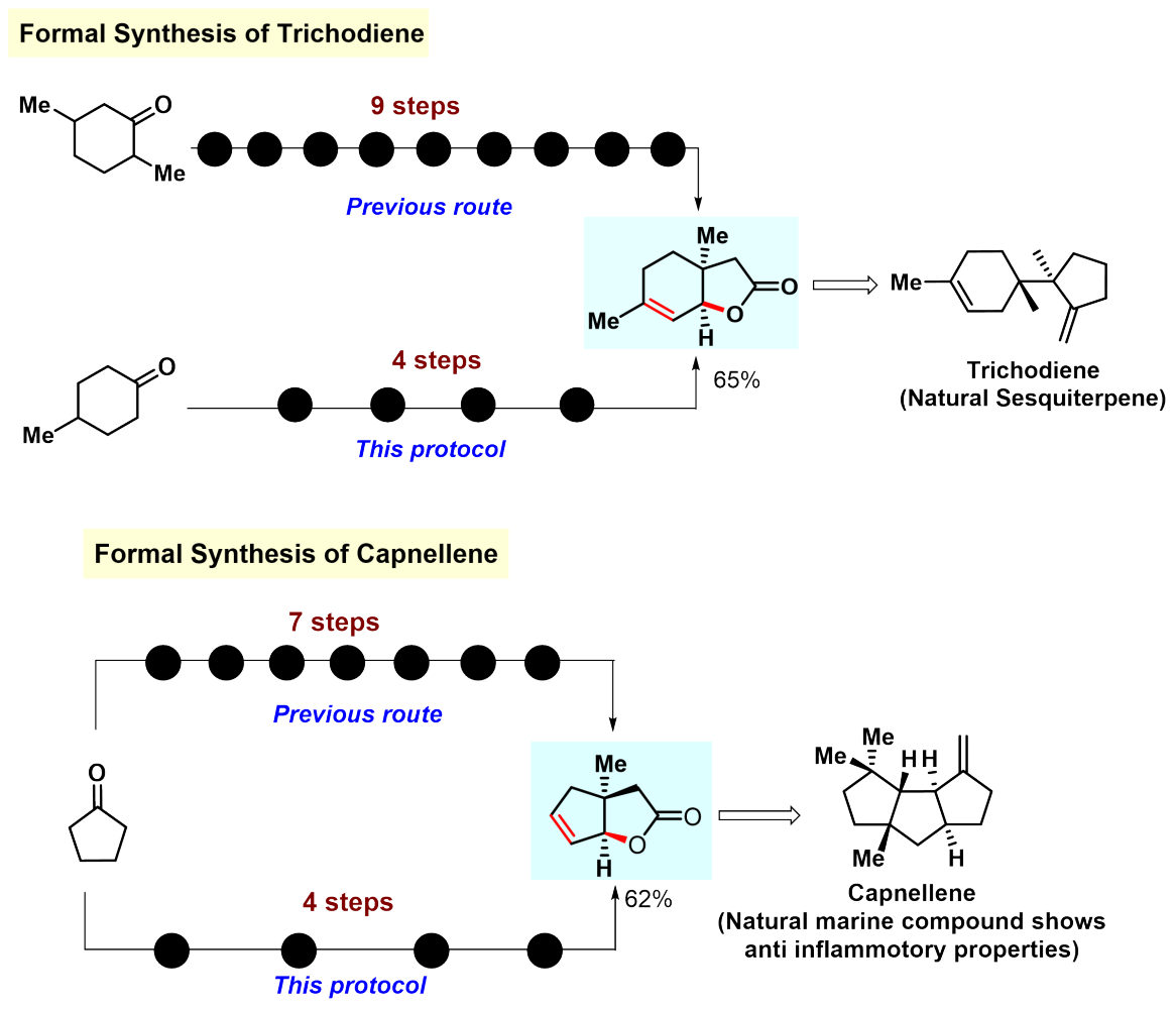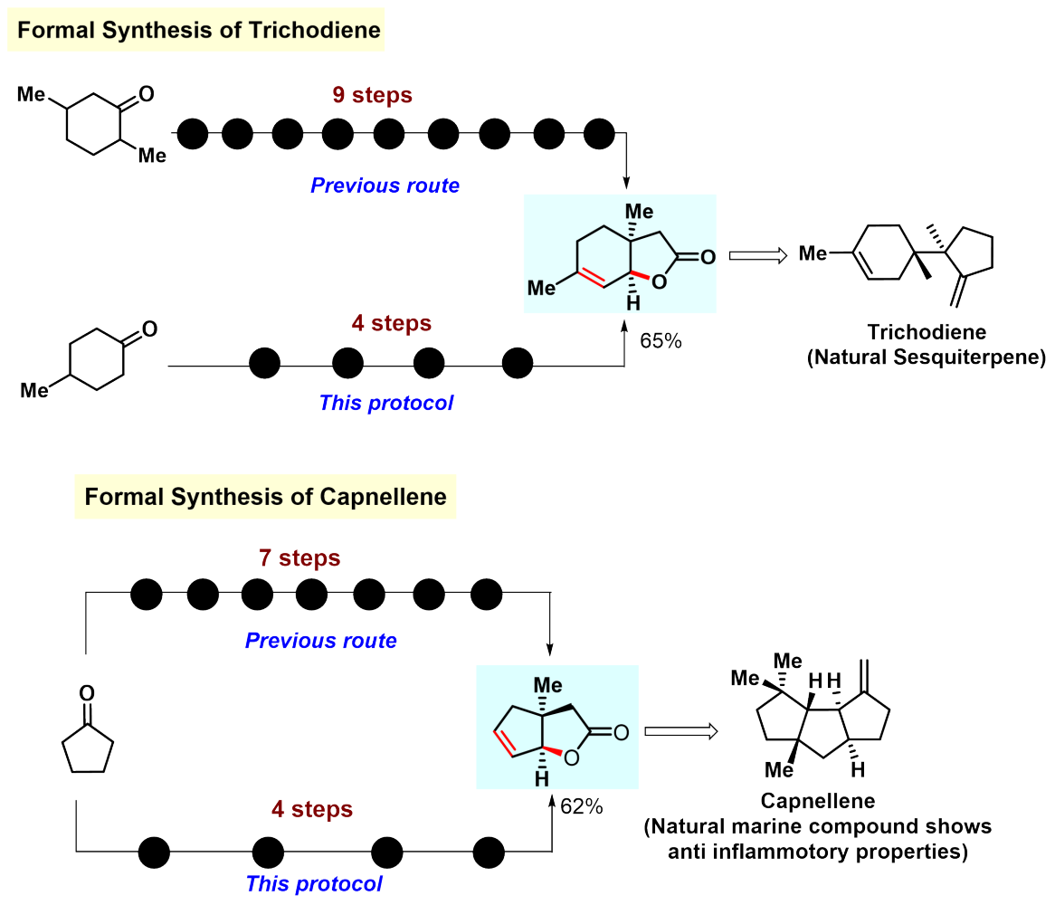 We portrayed a number of instances where the developed protocol could be harnessed to form various natural products or bioactive molecules in fewer steps than before (Figure 4).