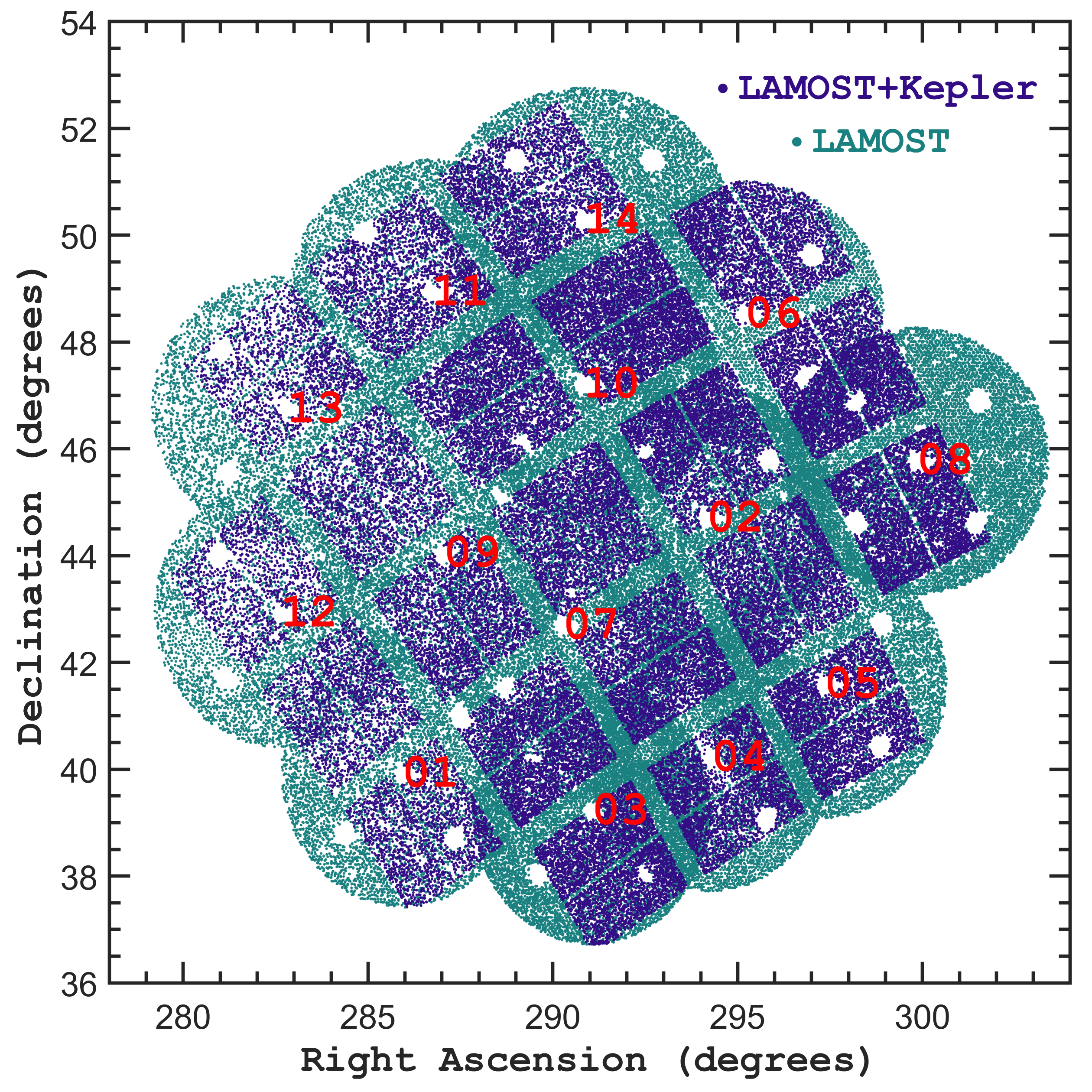 Figure 3: Sky coverage of all targets observed by the LAMOST-Kepler project. (Image Credit: Weikai Zong, Beijing Normal University).
