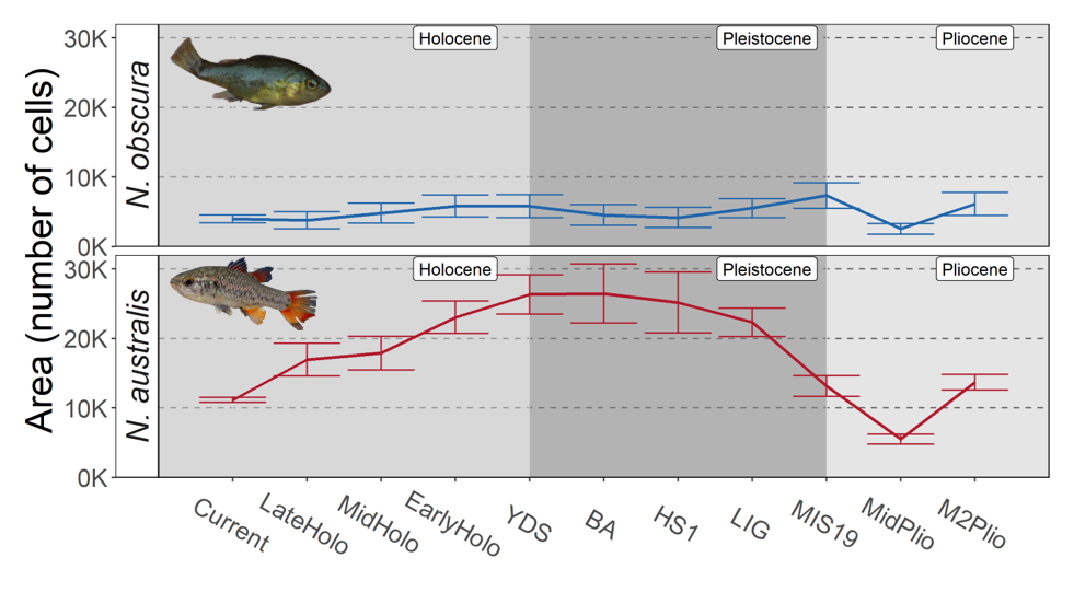 Several key differences across the species were immediately apparent. As expected, genetic diversity was much lower in Yarra than southern pygmy perch, likely influenced by lower historical connectivity between populations. Additionally, we found evidence for a large-scale expansion of distribution in southern pygmy perch during the last glacial maximum (~21 Kya), but not in Yarra pygmy perch (which appears to have been confined to its current distribution extent throughout history). The two species seemed to share this region of coastal southeast Australia as a climatic refugium throughout time. Together, these various components show very different evolutionary histories between the two species.