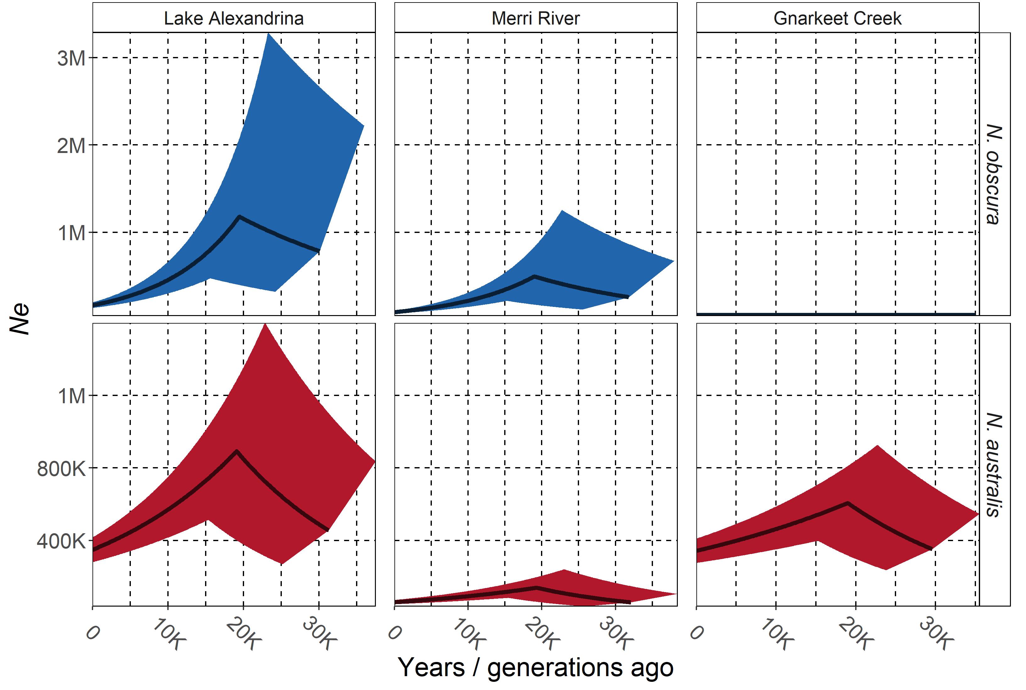 We suggested that the higher genetic variation in southern pygmy perch throughout history – boosted by higher interpopulation connectivity – provided the capacity for the species to capitalise on the more favourable conditions of glacial maxima. Yarra pygmy perch, however, seem to have always lacked this genetic diversity and thus could not expand in the same way. These findings highlight the complex role of intraspecific patterns in shaping interspecific variation in species responses, and suggests an important factor possibly underlying the lack of success in Yarra pygmy perch reintroductions. Reintroductions (or introductions into novel habitat) mimic many of the selective processes under which range expansions occur, with small populations struggling to adapt and maintain stability in a challenging environment. Our historical perspectives suggest that the lack of genetic diversity in Yarra pygmy perch is a significant barrier for them – our captive management program has now evolved into genetic rescue by mixing divergent populations to try and address this issue. Without these efforts to bolster genetic diversity, threatened species may not be adequately equipped to handle the trials of reintroduction and the challenges of a changing world.