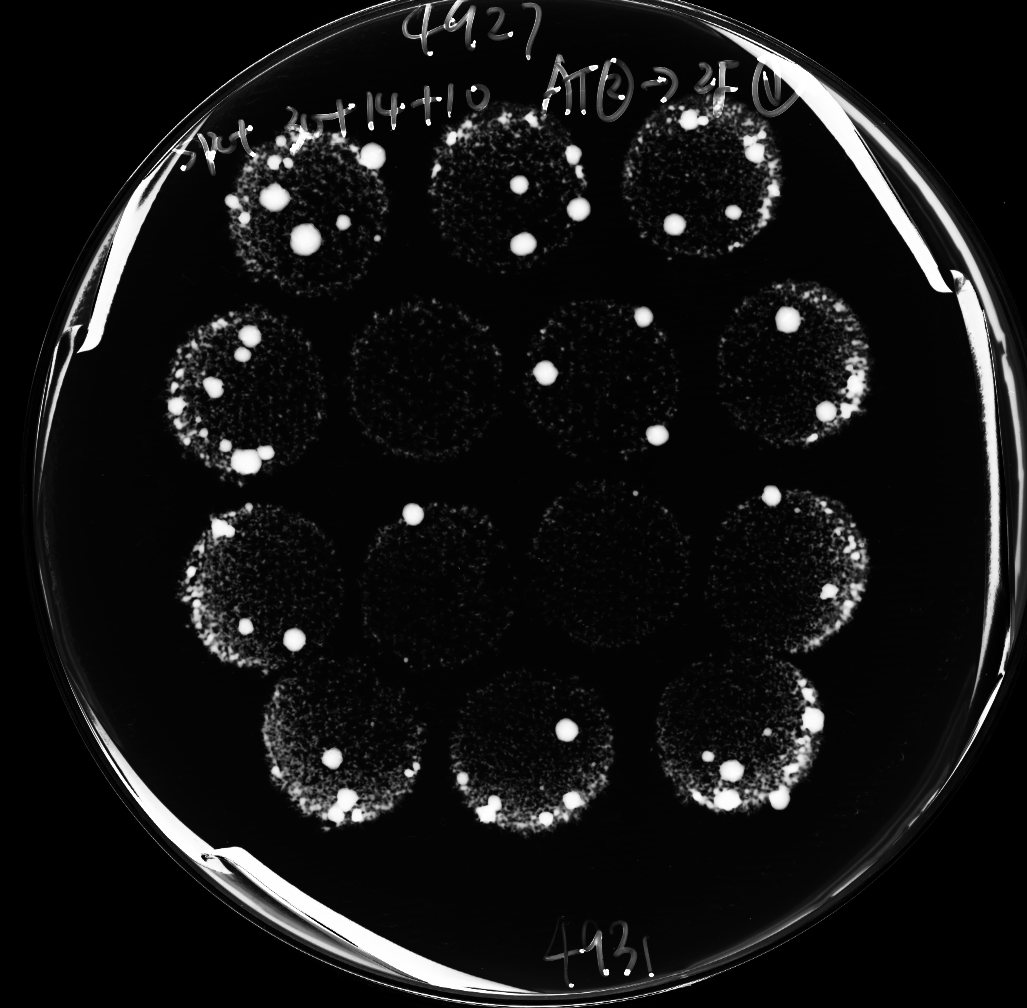Picture 2. Image of a plate selecting for T-BOE suppressors of eso1.
