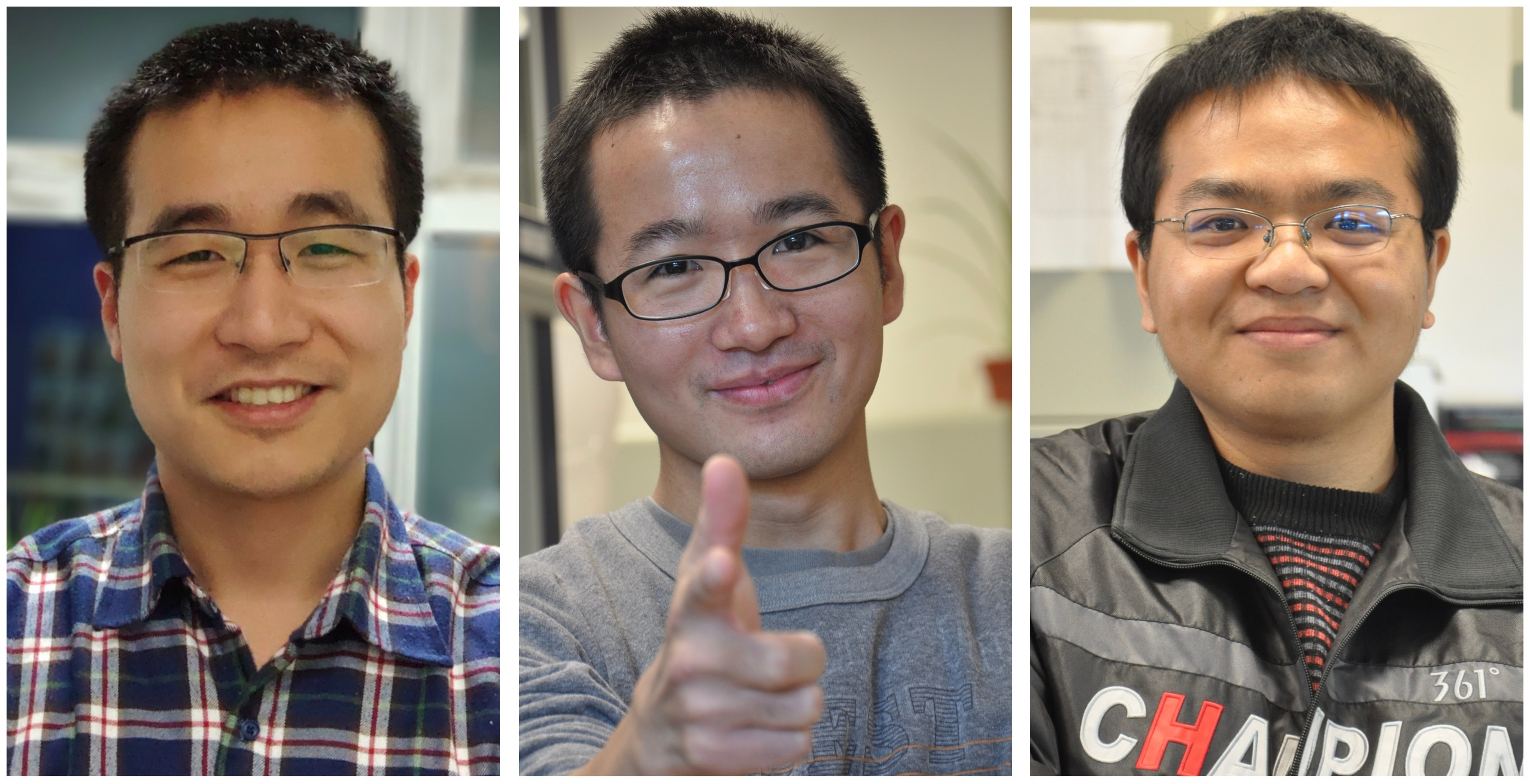 Picture 3. The three co-first authors of the paper (left to right): Jun Li, Hai-Tao Wang, and Wei-Tao Wang.