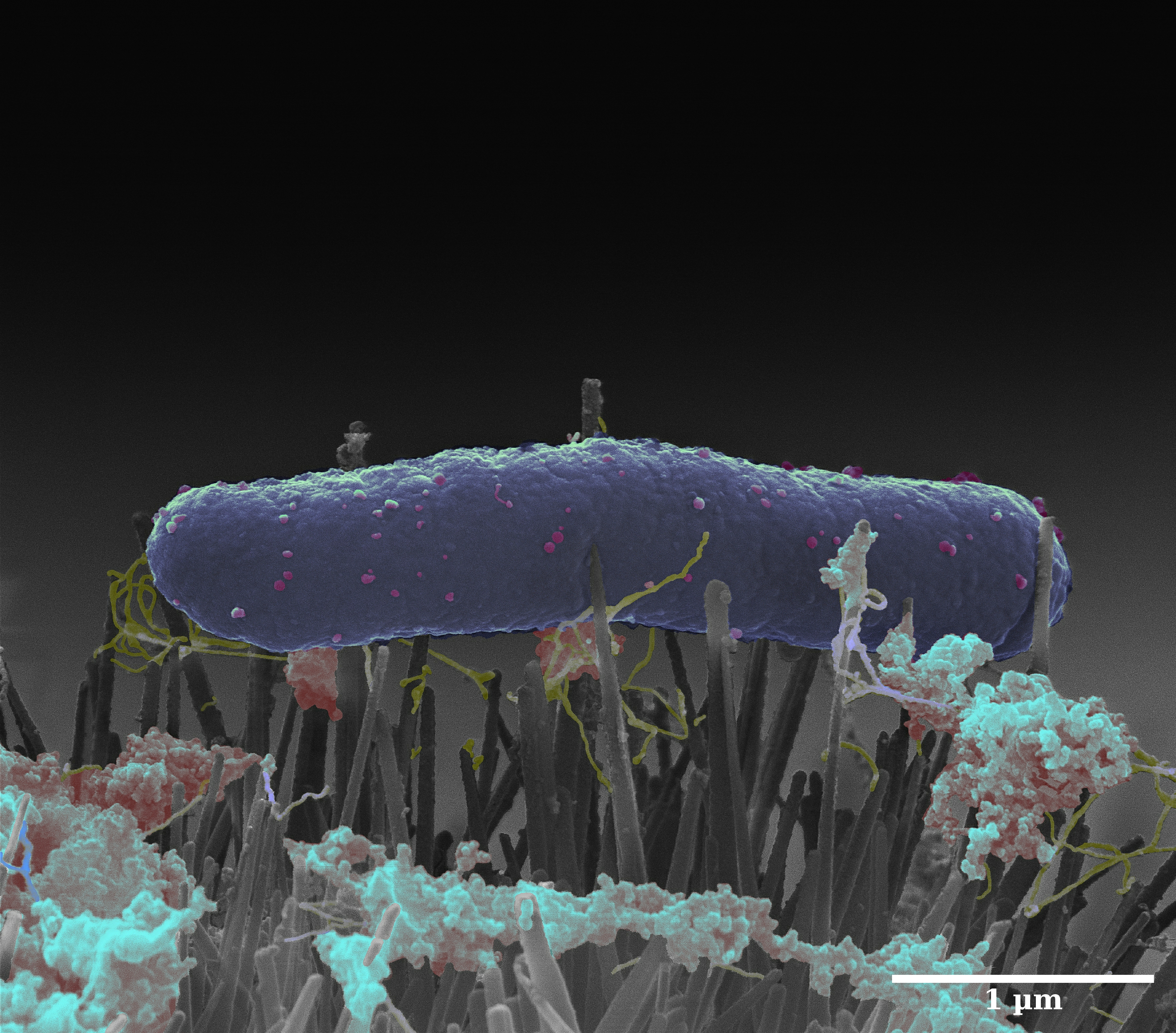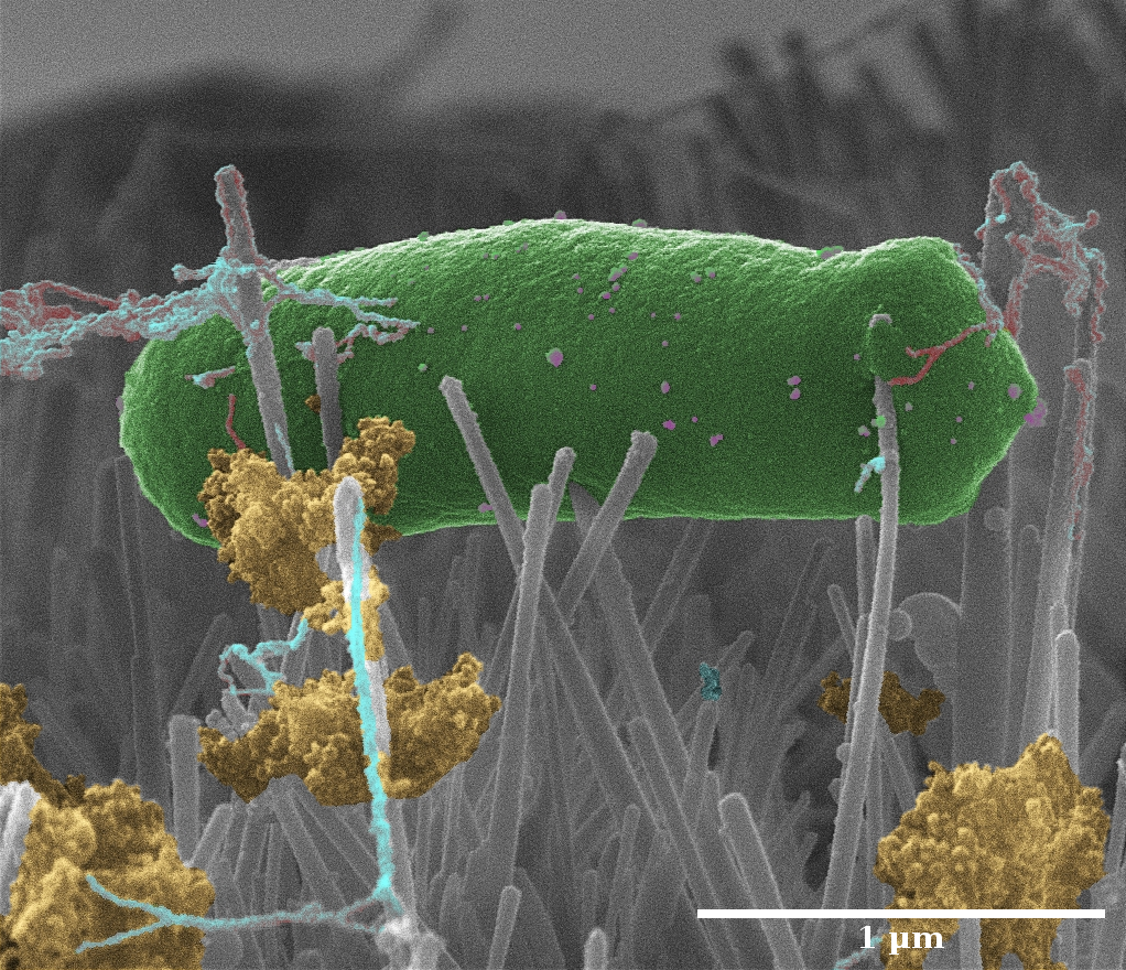 Studies over the past decade have proposed that nanopillars stretch the bacterial cell envelope upon contact, causing a loss of structural integrity that leads to bacterial lysis and death. However, although dragonfly mimetic surfaces have been shown to possess antibacterial activity, a consensus has yet to be reached on the precise mechanisms that cause bacterial killing. To address this knowledge gap, our group seeks to better understand the mechanisms of nanopillar-mediated cell death so as to facilitate the translation of this technology into clinical applications. For this, a multidisciplinary research team of biomaterials scientists, microbiologists, biochemists and image specialists has been assembled.