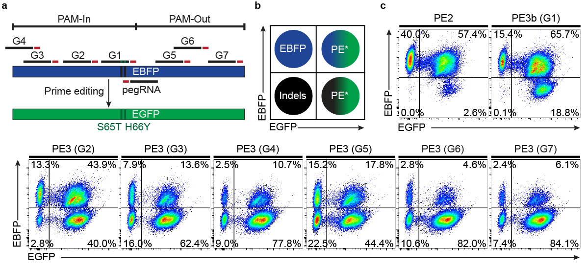 Finally, using the near-triploid K562 cell line, we adapted an EBFP to EGFP reporter system to assess the impact of complementary-strand nicks (PE3 system) on prime editing outcomes. While the absence of a complementary-strand nick (PE2) led to high product purity, the vast majority of outcomes were mono or biallelic PE alleles. On the other hand, using an additional nick sgRNA markedly increased editing on all three alleles either in PAM-in or PAM-out mode. Hence, despite the decrease in product purity, the PE3 system drastically increases multiallelic editing in individual cells and facilitates the isolation of homozygous clones. Taken as a whole, our versatile strategies should streamline the incorporation of marker-free genomic modifications to create cellular models for biological research.
