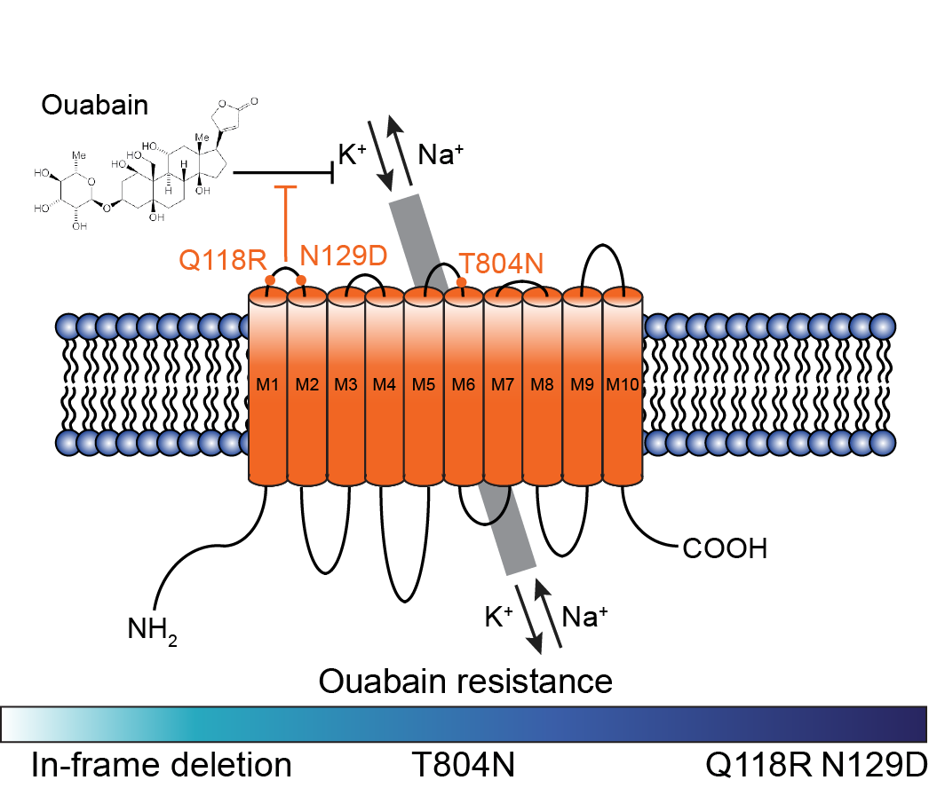 Engineering Na+/K+ ATPase variants that are progressively more resistant to ouabain.