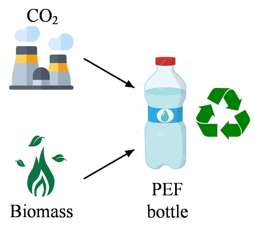 At the very beginning of our research, we target to conduct a comprehensive analysis on producing PEF bottle to replace current PET type since PEF is chemically similar to PET, but consists of 100% renewable raw materials. After that, the main concern is to find the suitable pathway for PEF production which is hard to decide due to various available approaches. One inspiration comes from a discussion with Dr Andrew Smallbone and Prof. Tony Roskilly. It is noted that the research should be conducted based on the CCS project. Thus industrial CO2 is better to be utilised and biowaste could be considered as a resource since it will not compete with food sector. It tends to be a triple-win solution to topics of carbon capture and utilisation, biowaste utilisation, and plastic synthesis.
