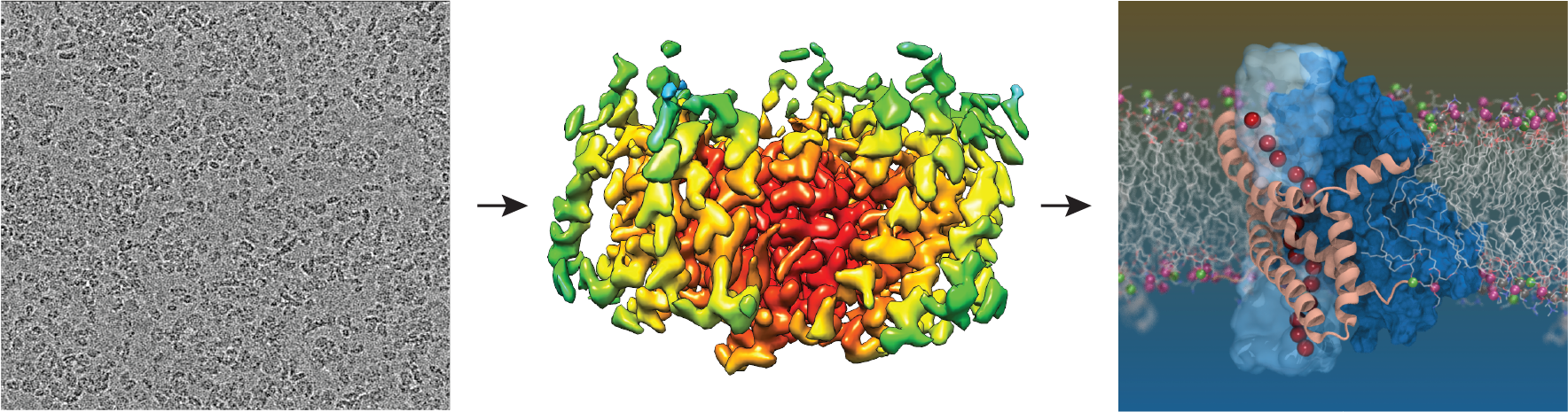 In an effort to visualize an aqueously accessible, chloride permeation pathway, we utilized a disulfide crosslinking strategy in an attempt to “lock” the archaeal homolog of the mammalian transporter, GltPh, at various states within the substrate transport cycle. Initially, X-ray crystallography was used to solve the structures of a number of these “locked” transporters. However, after extensive screening, optimization, and shooting thousands of crystals of many cross-linked mutants, we were only able to solve structures of the two most stable end-states, the outward facing and the inward facing conformations where chloride permeation does not occur. The probability of the chloride channel opening has been predicted to be as low as 0.01, which means that it is likely a rare and transient state5. We started to question whether it was even possible to capture this novel state using X-ray crystallography, a method that requires protein to be highly stable and homogenous.