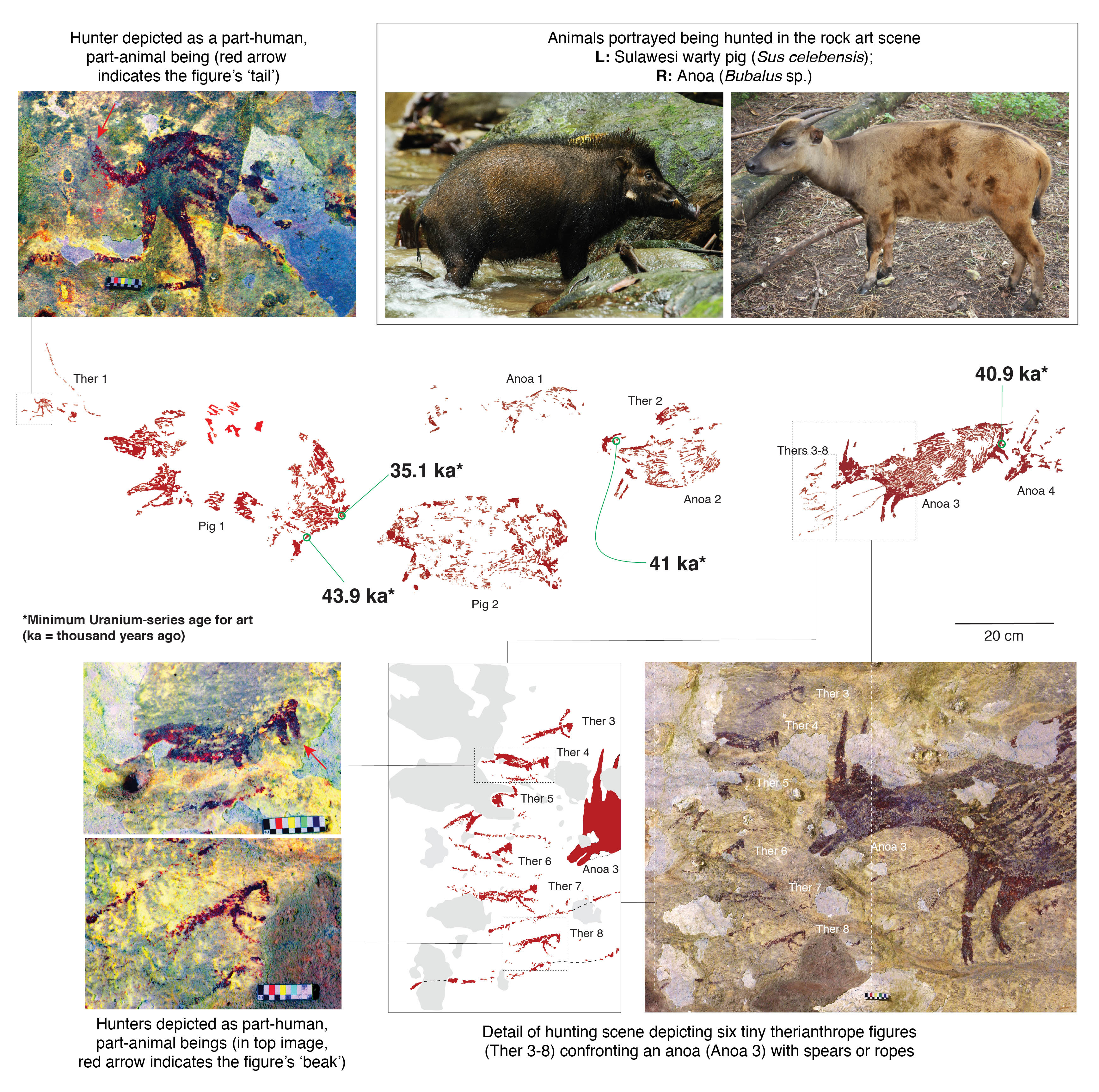 It is interesting that key hallmarks of sophisticated Palaeolithic art (figurative depiction, scenes, and therianthropes) are all present by at least 44,000 years ago in Indonesia, pointing to deeper origins for these traits in the early human story.