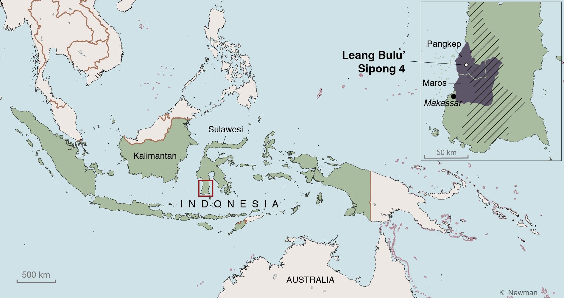 The cave art site, Leang Bulu’ Sipong 4, is located in the limestone karst region of Pangkep.